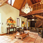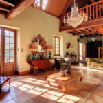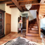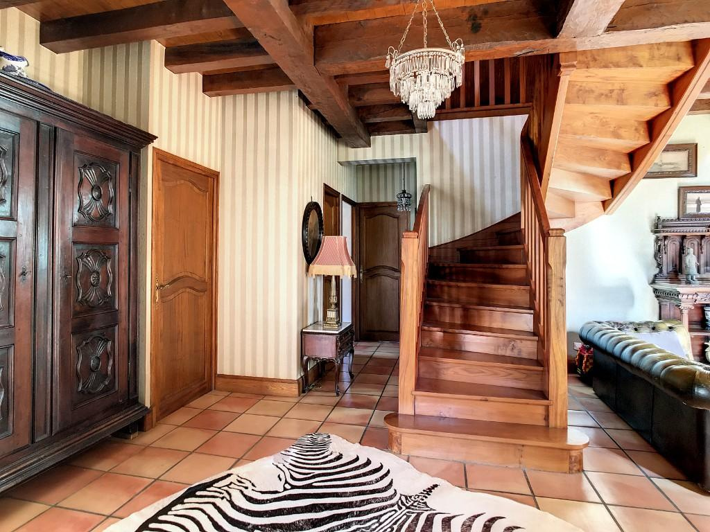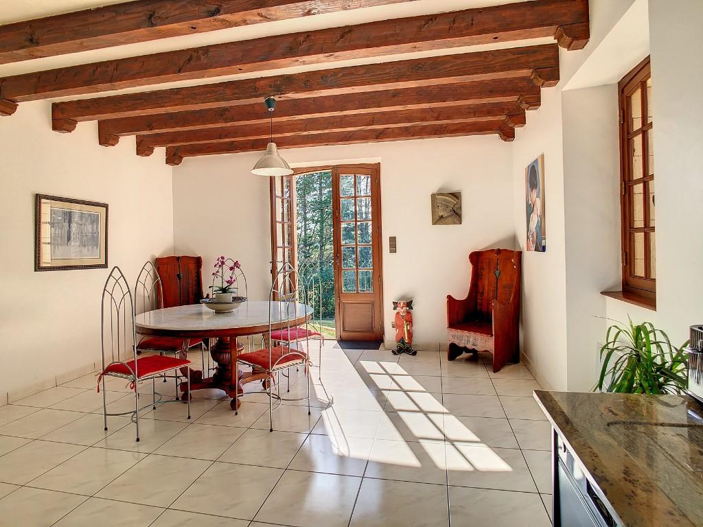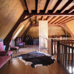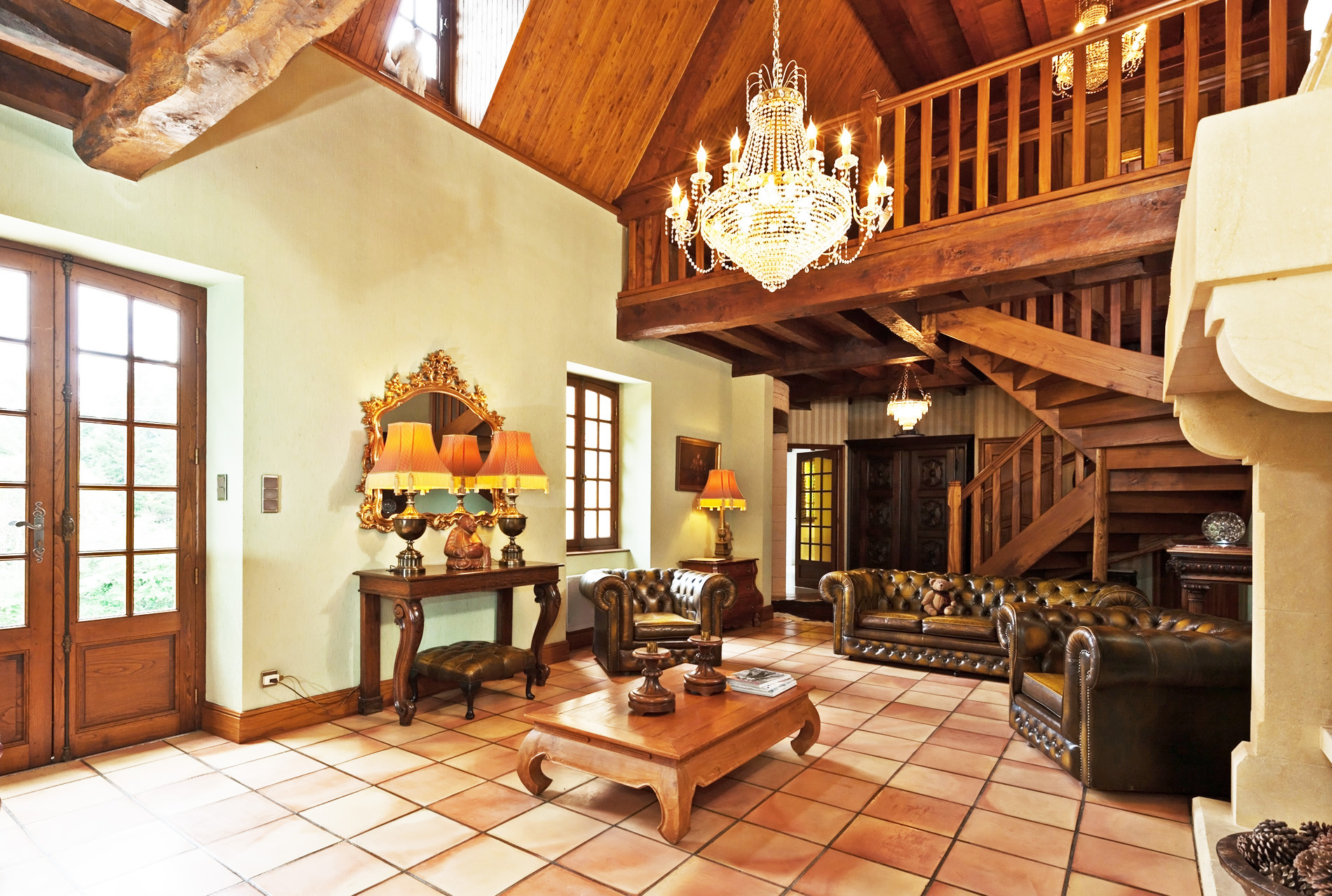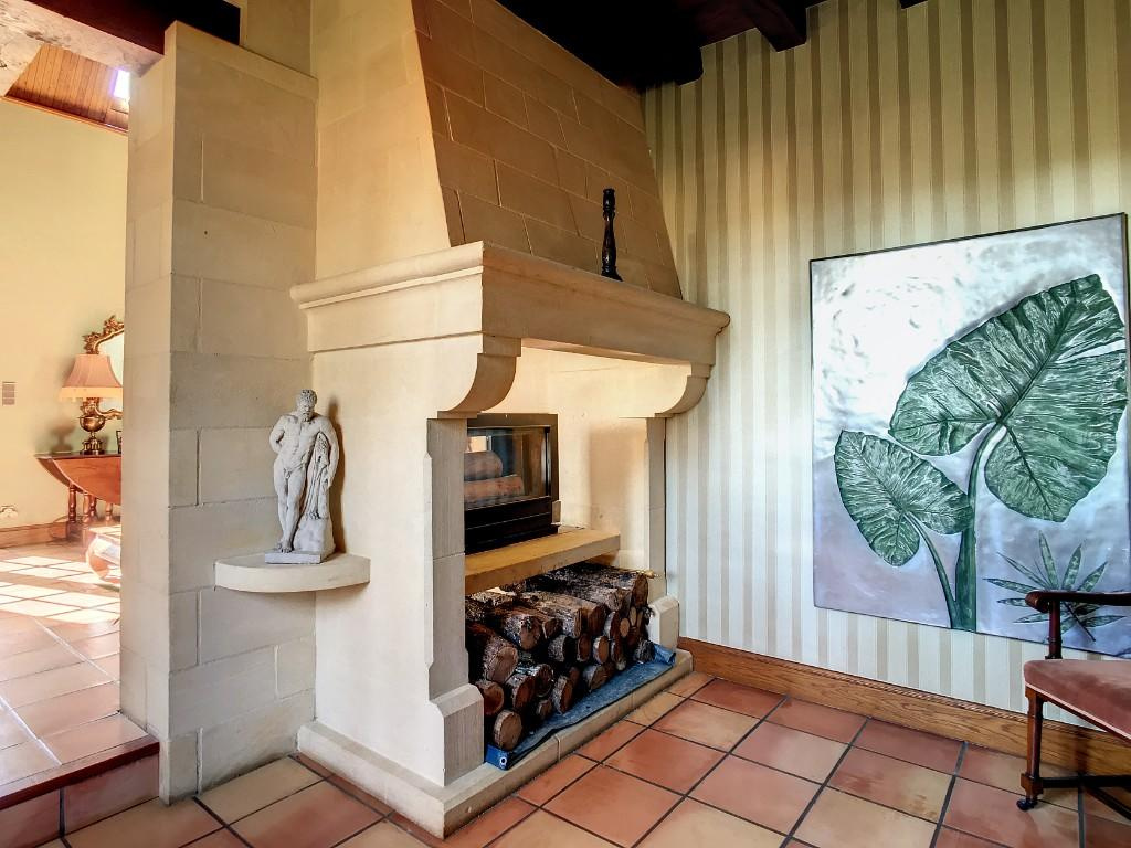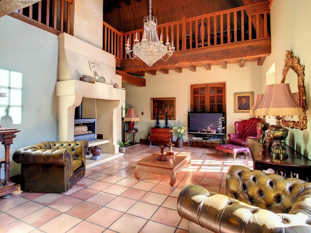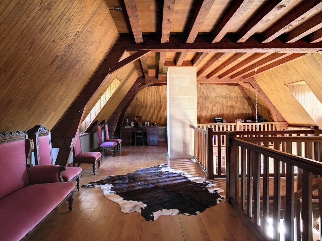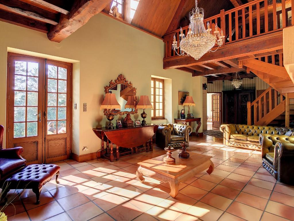 – Séjour/salon avec cheminée, très belle hauteur avec sa charpente apparente.