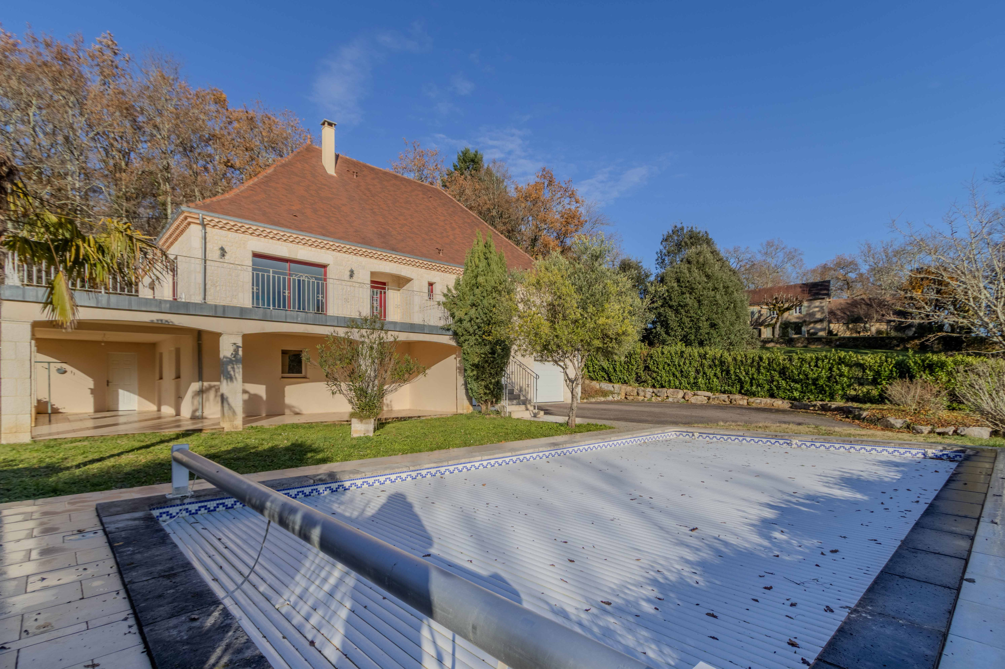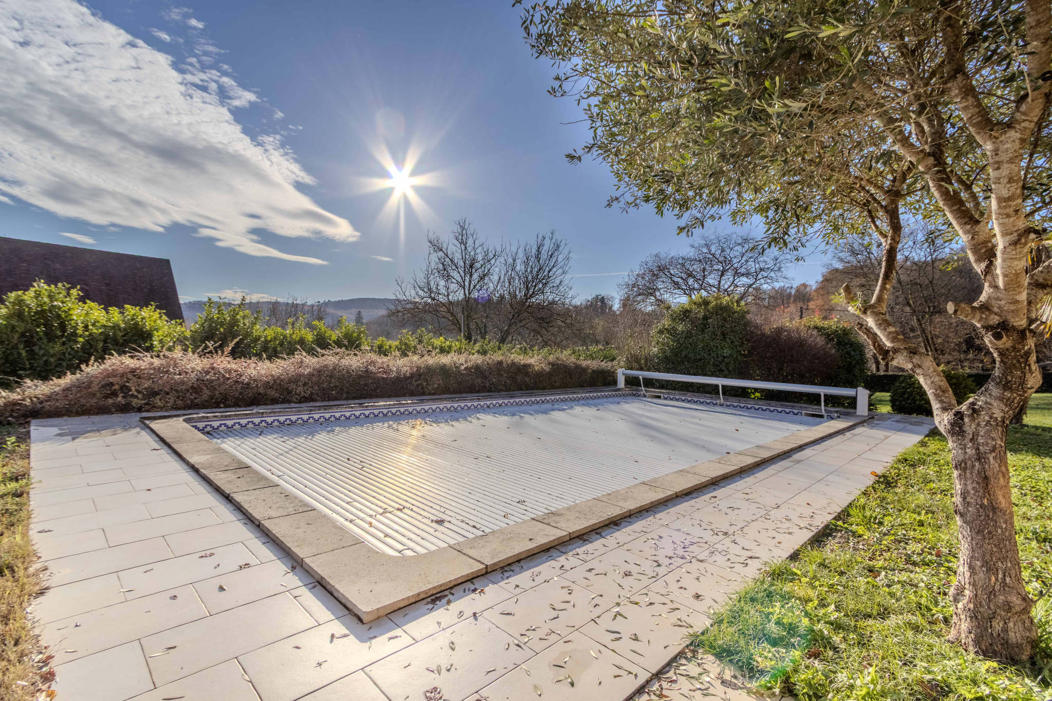 Piscine au sel 5x10m avec volet de sécurité.