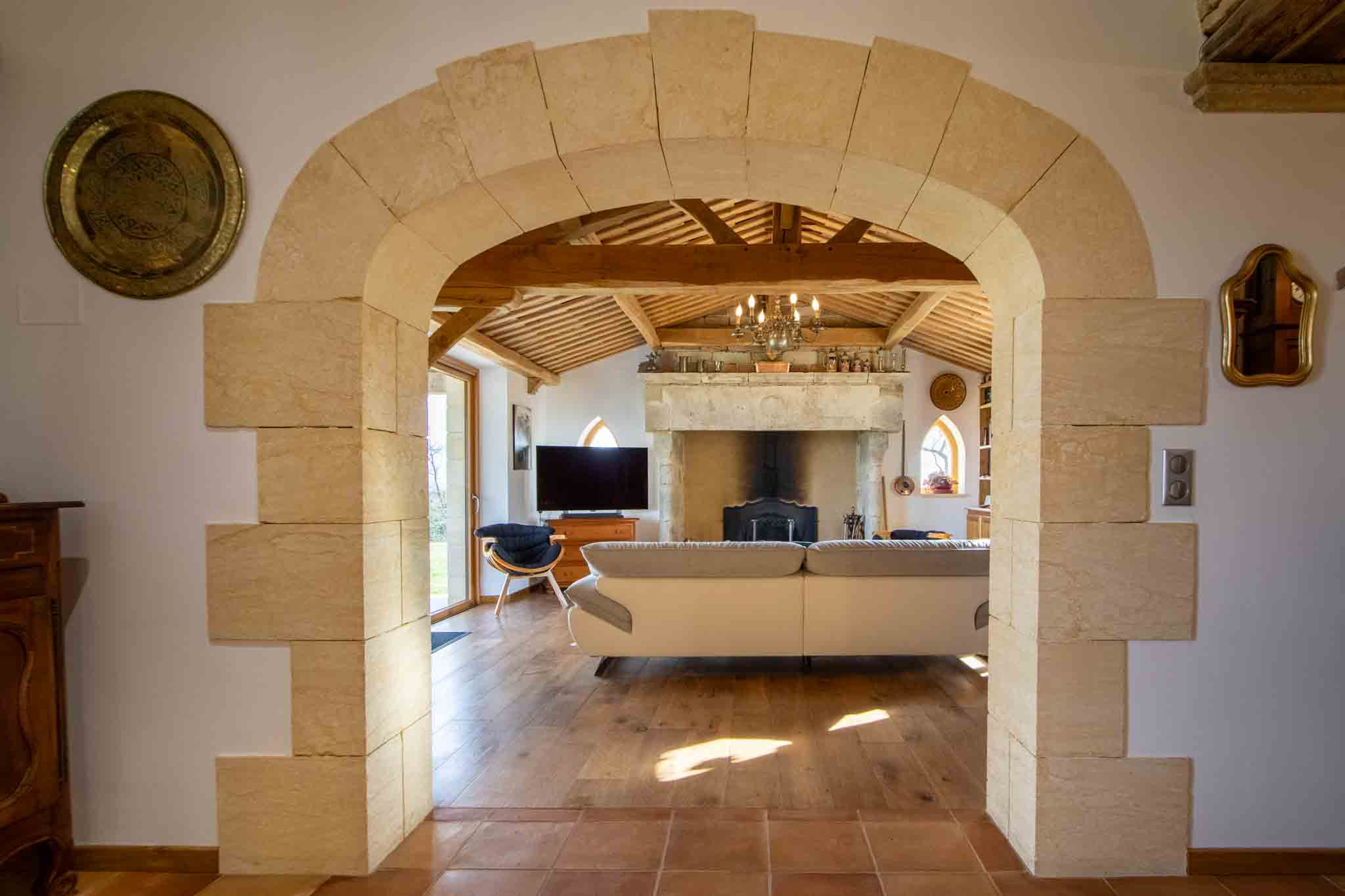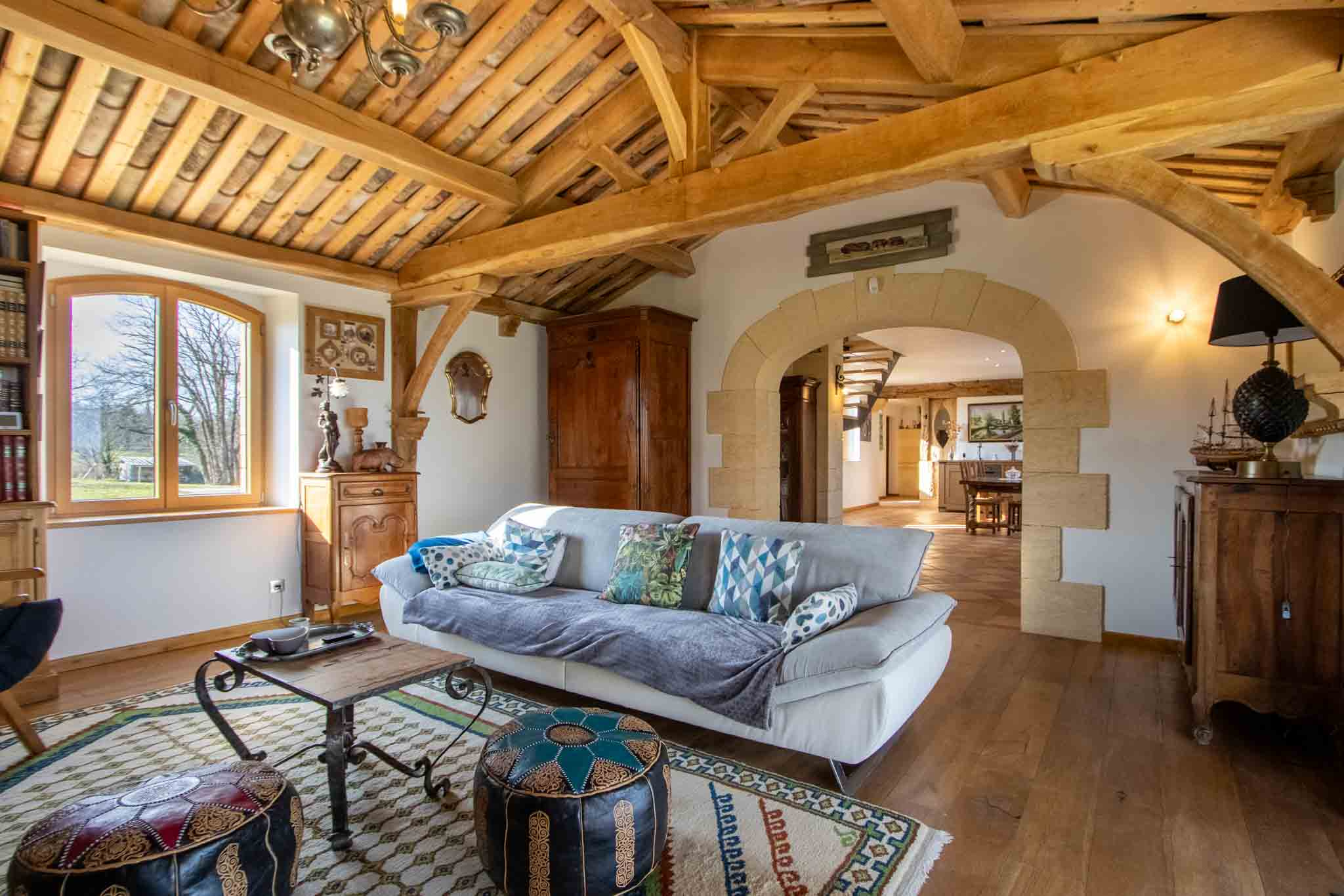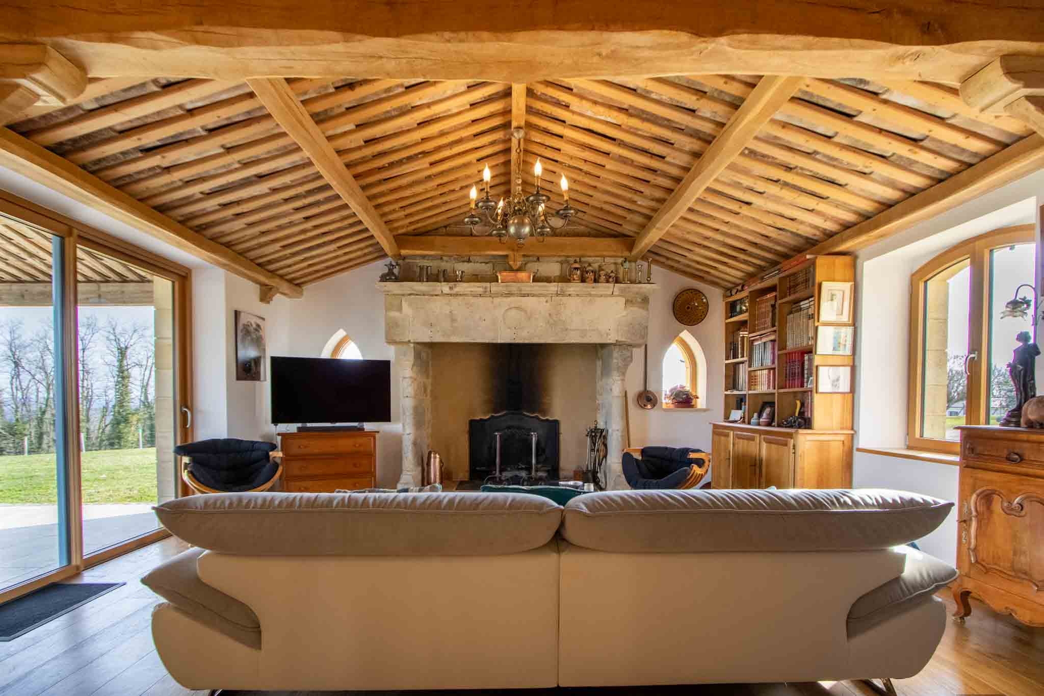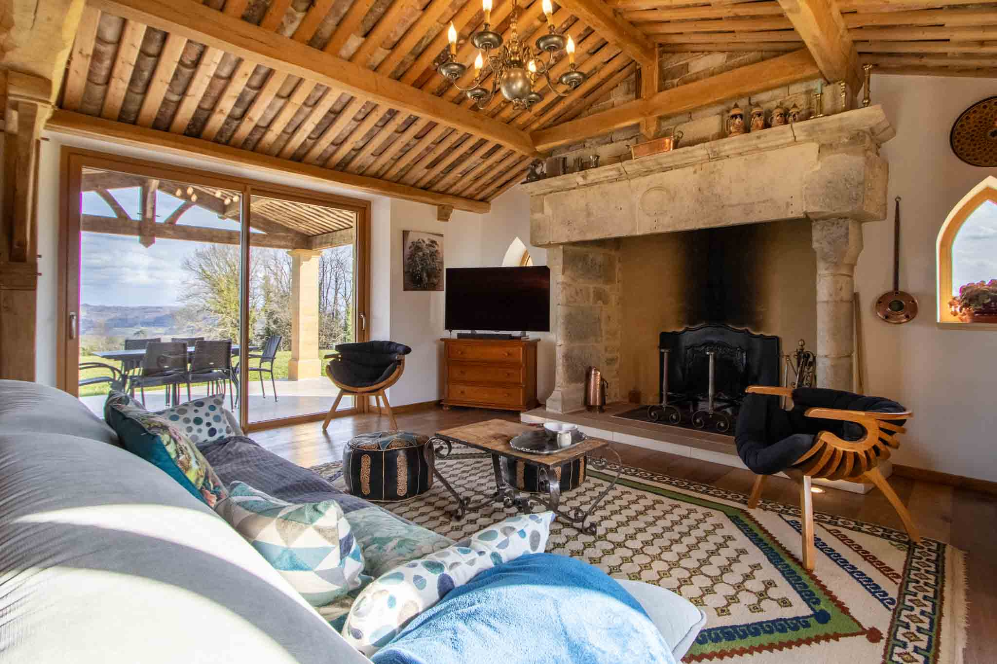 – Salon avec cheminée ouverte,