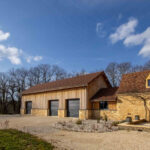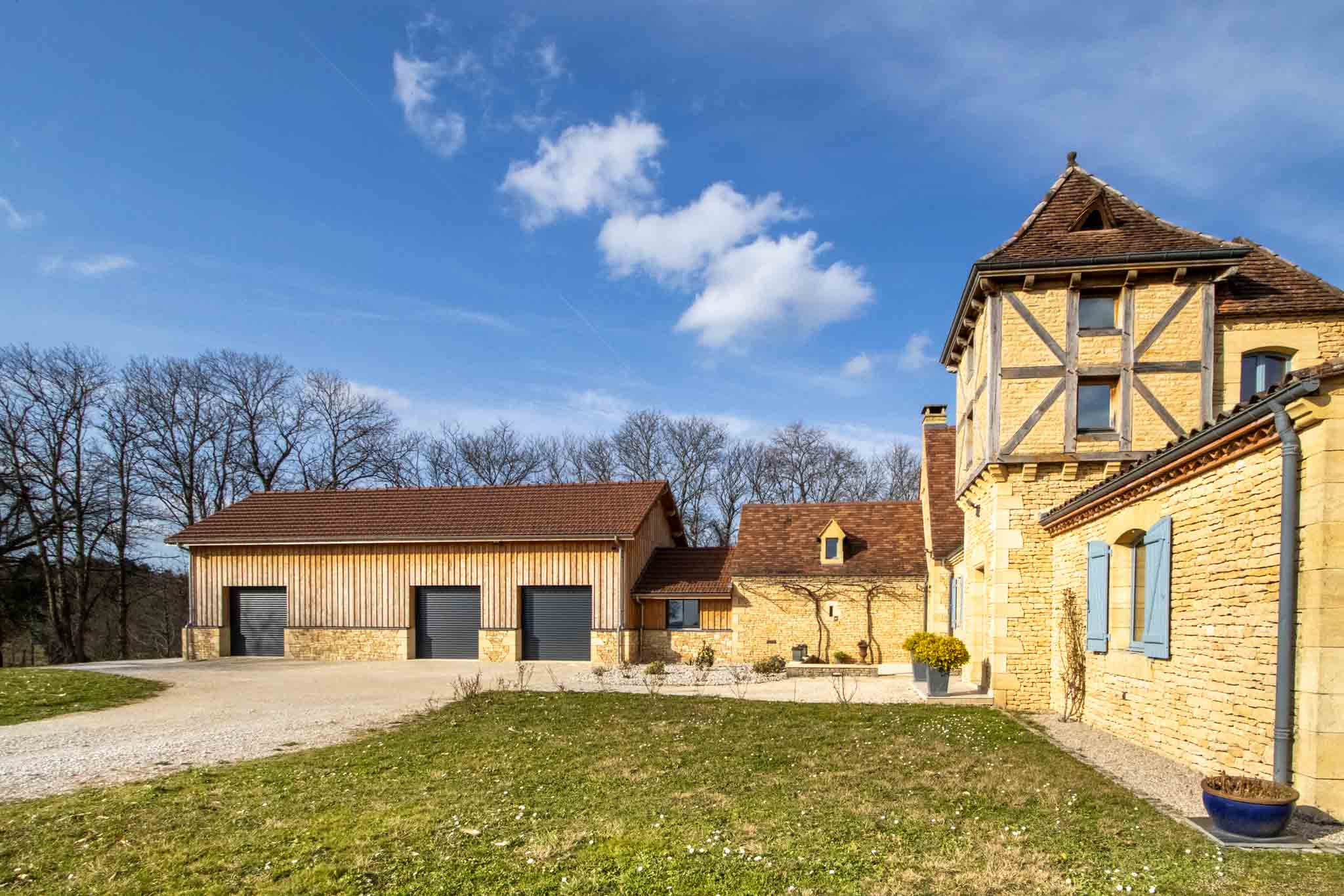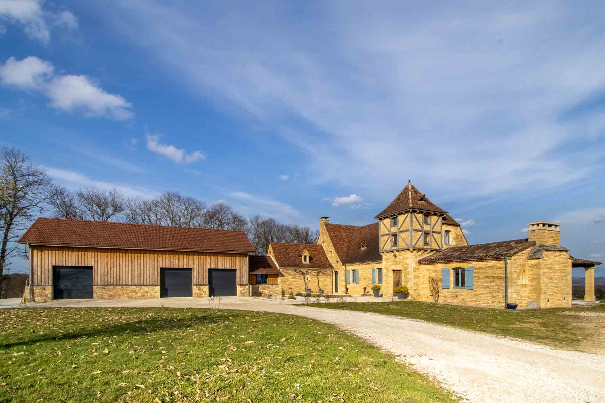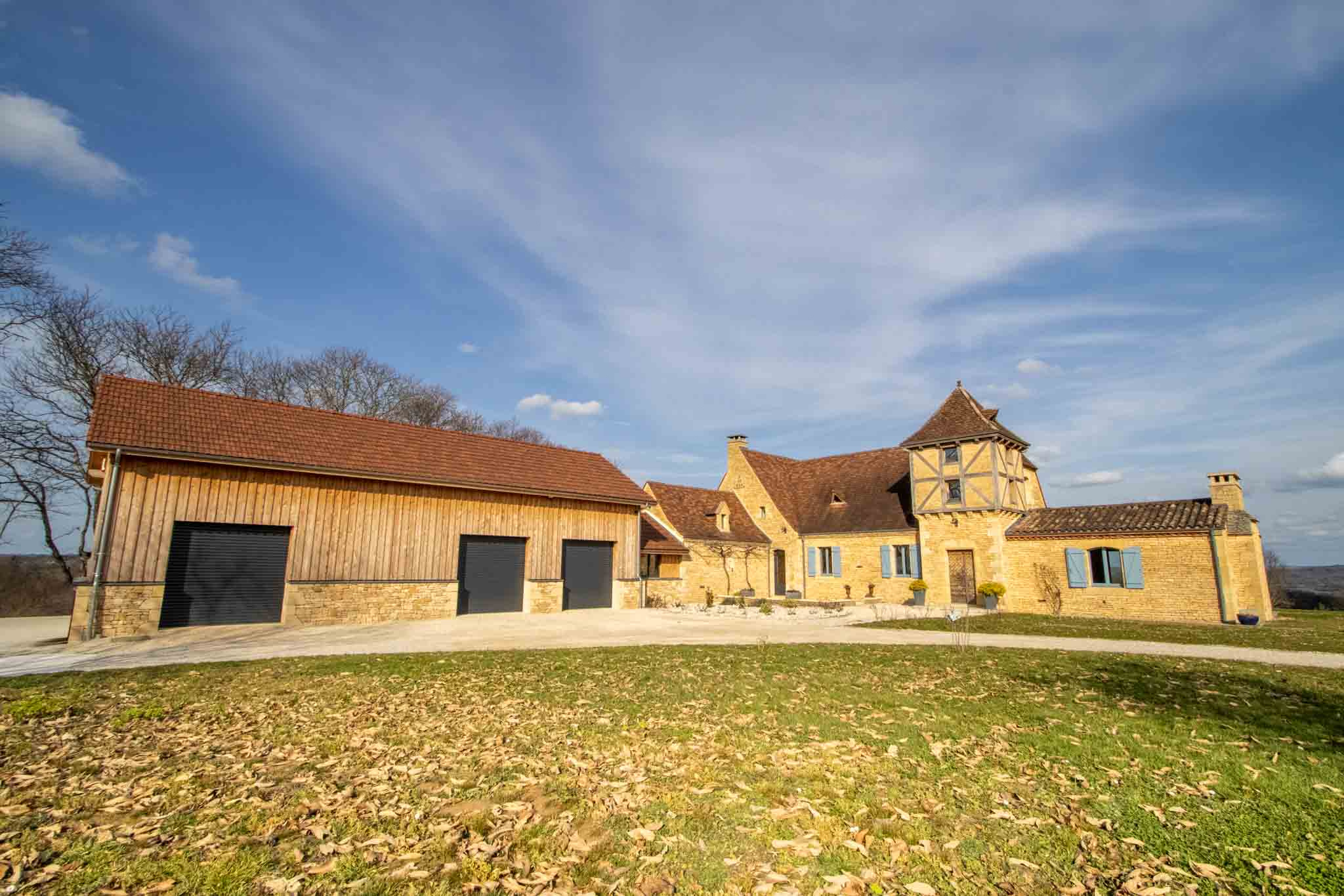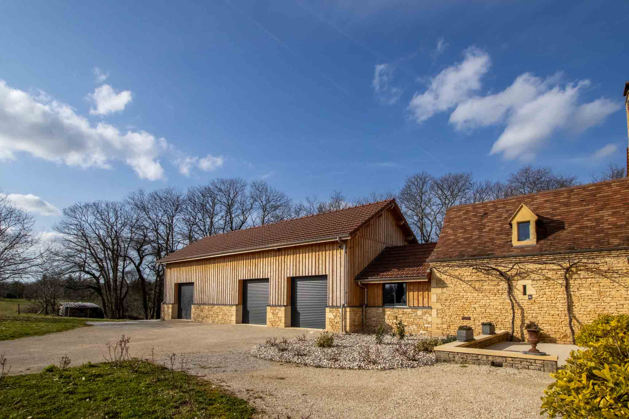 Attenant : garage – atelier sur deux niveaux avec 3 portes motorisées.