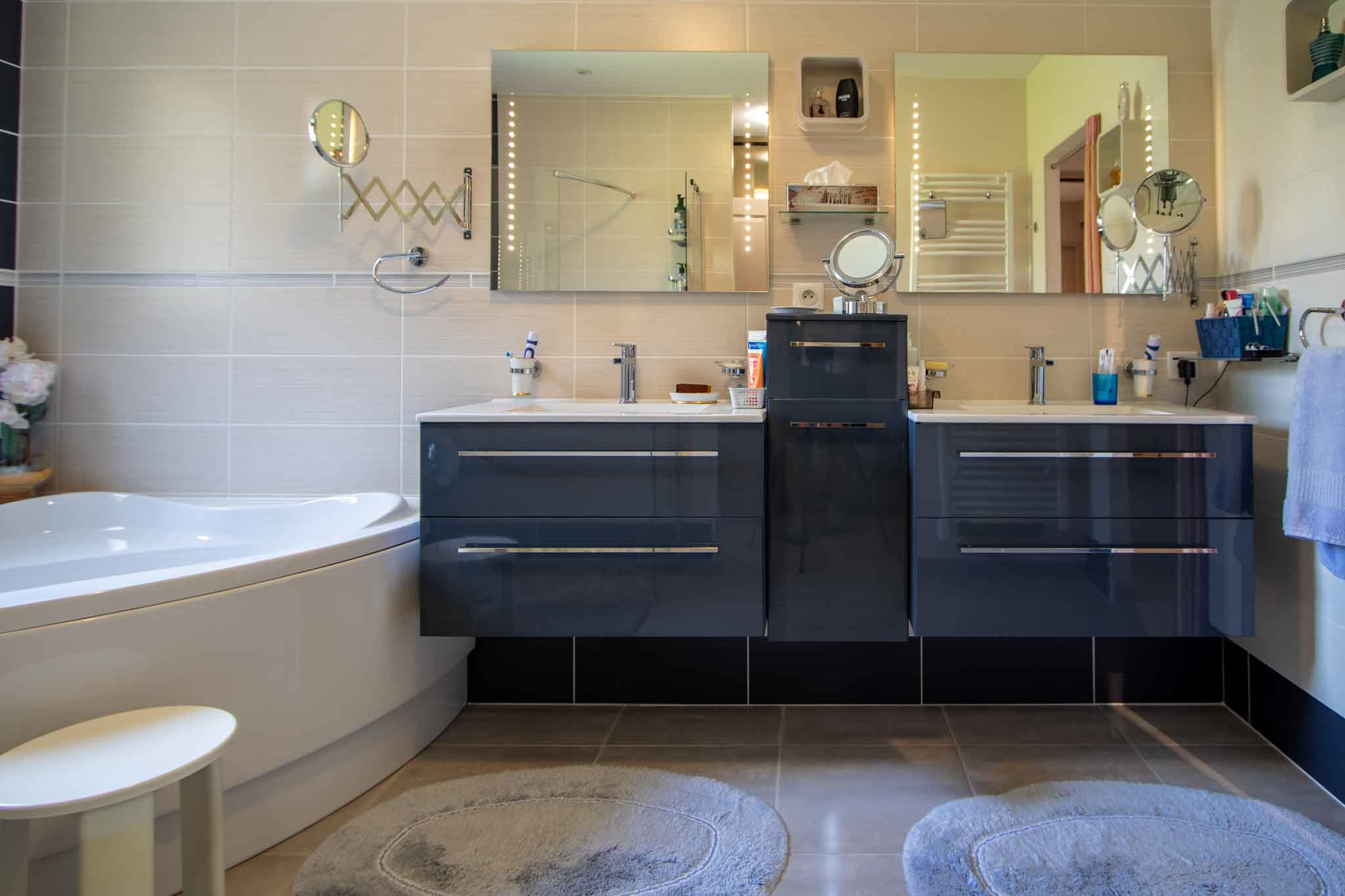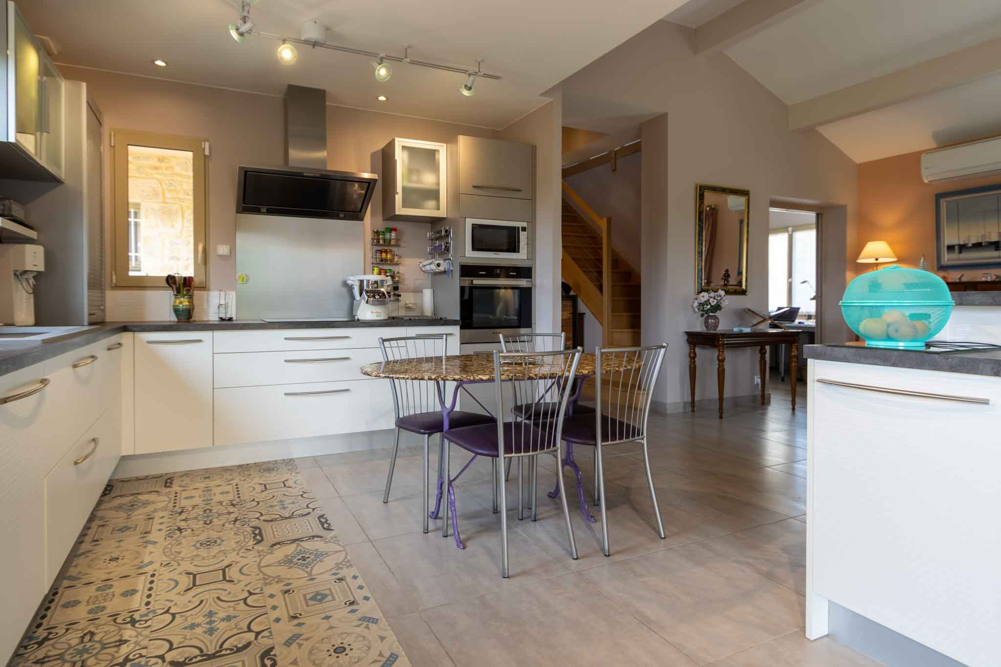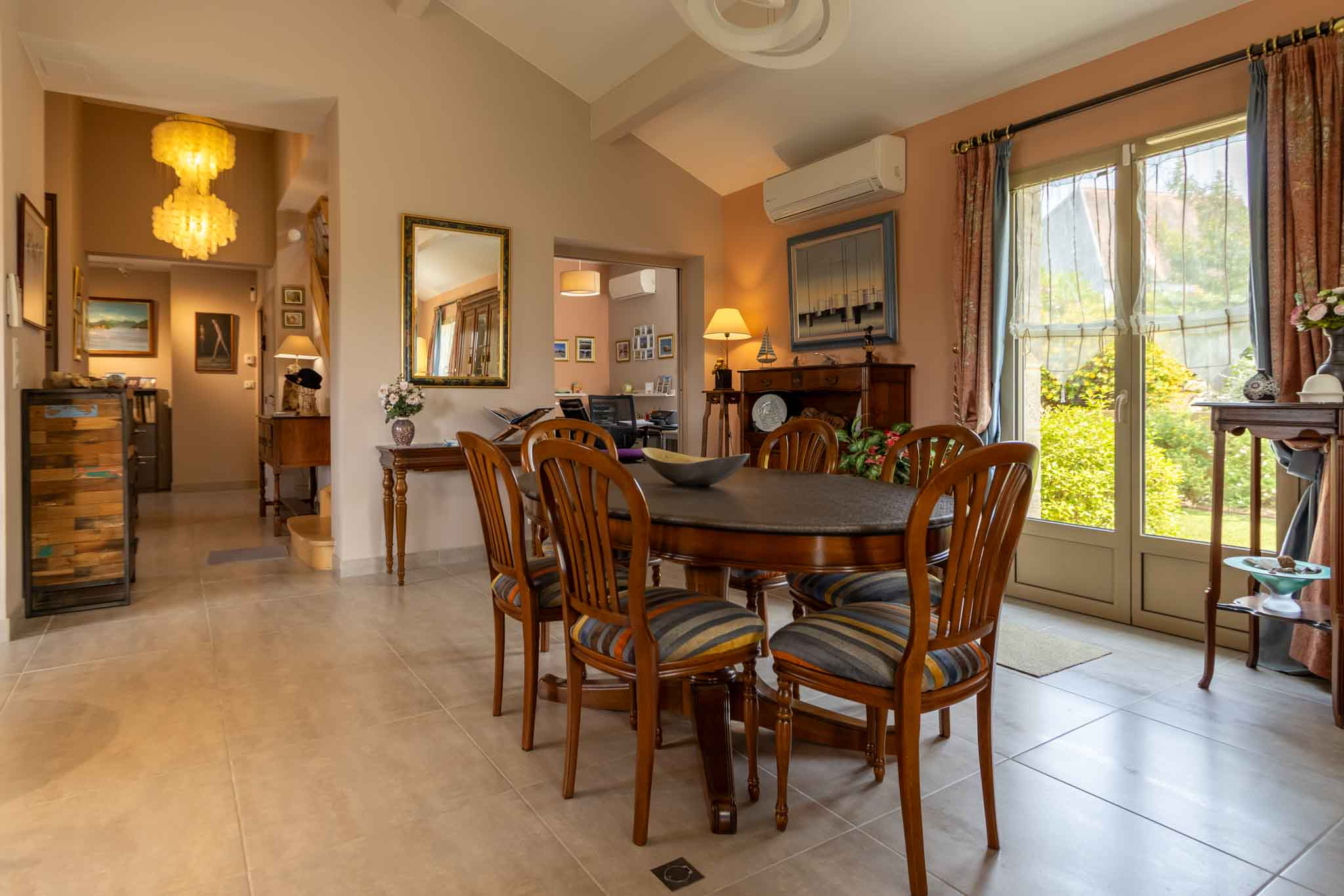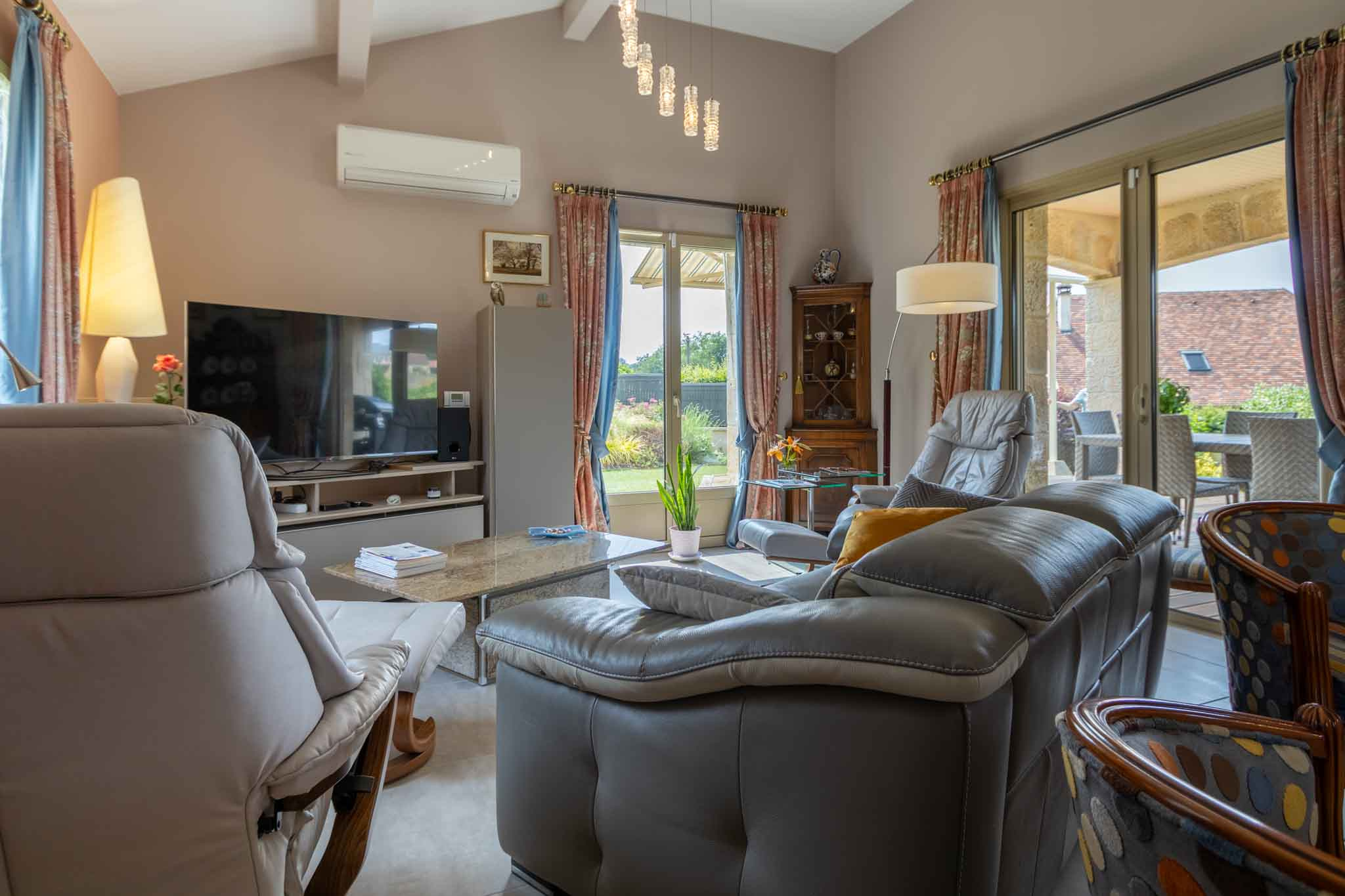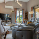 -Séjour, salon, cuisine équipée et aménagée ouvrant sur terrasse couverte et jardin avec jacuzzi,