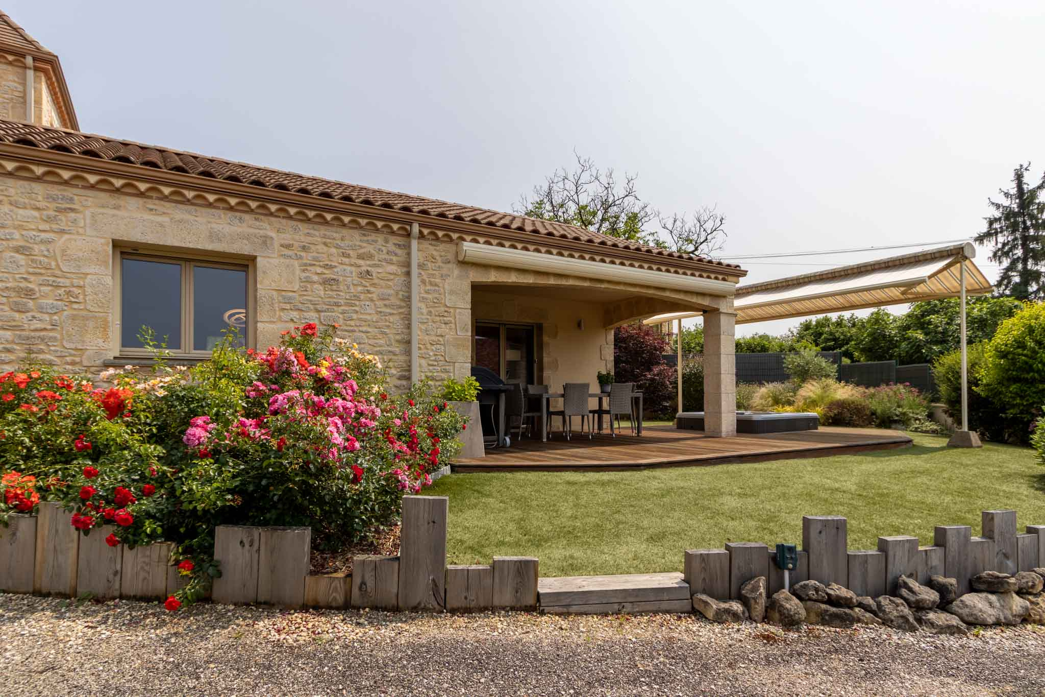 Elégante maison périgourdine, construite en 2013 dans un quartier résidentiel en position dominante ,alliant caractère traditionnel du Périgord et confort moderne. Implantée sur un terrain clos de 1500m2 avec portail motorisé, elle offre une architecture soignée, menuiseries en aluminium et stores motorisés et dispose de 3 chambres dont une en rez de jardin. Elle constitue un véritable havre de paix, idéal pour les amateurs de cadre de vie agréable, et se situe à moins de 10 minutes à pied de toutes commodités et proche de la piste cyclable.