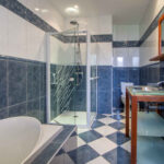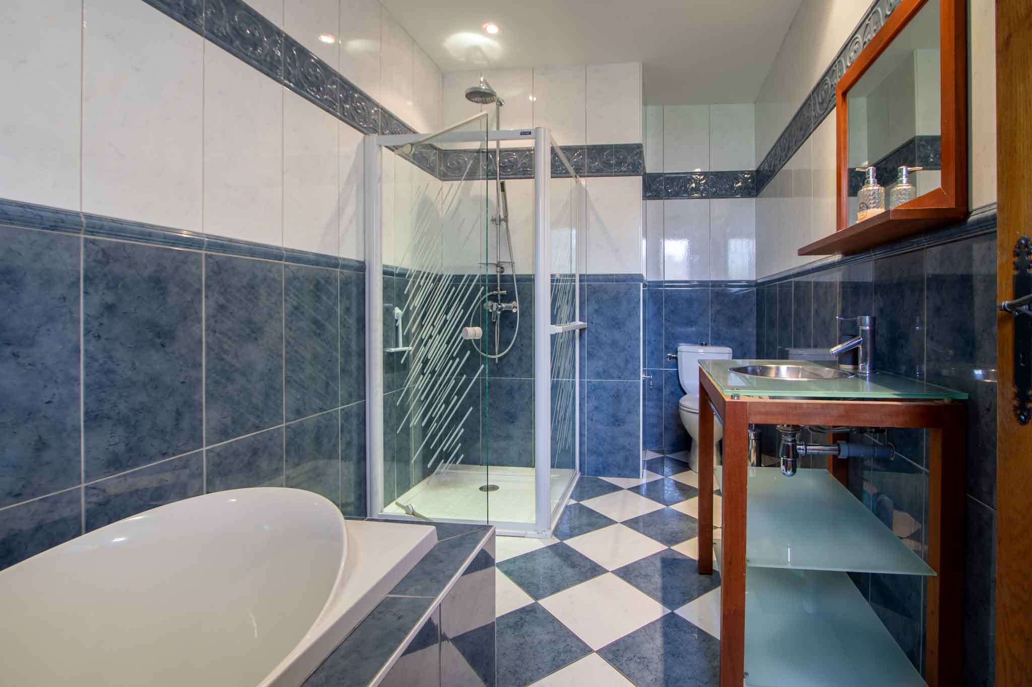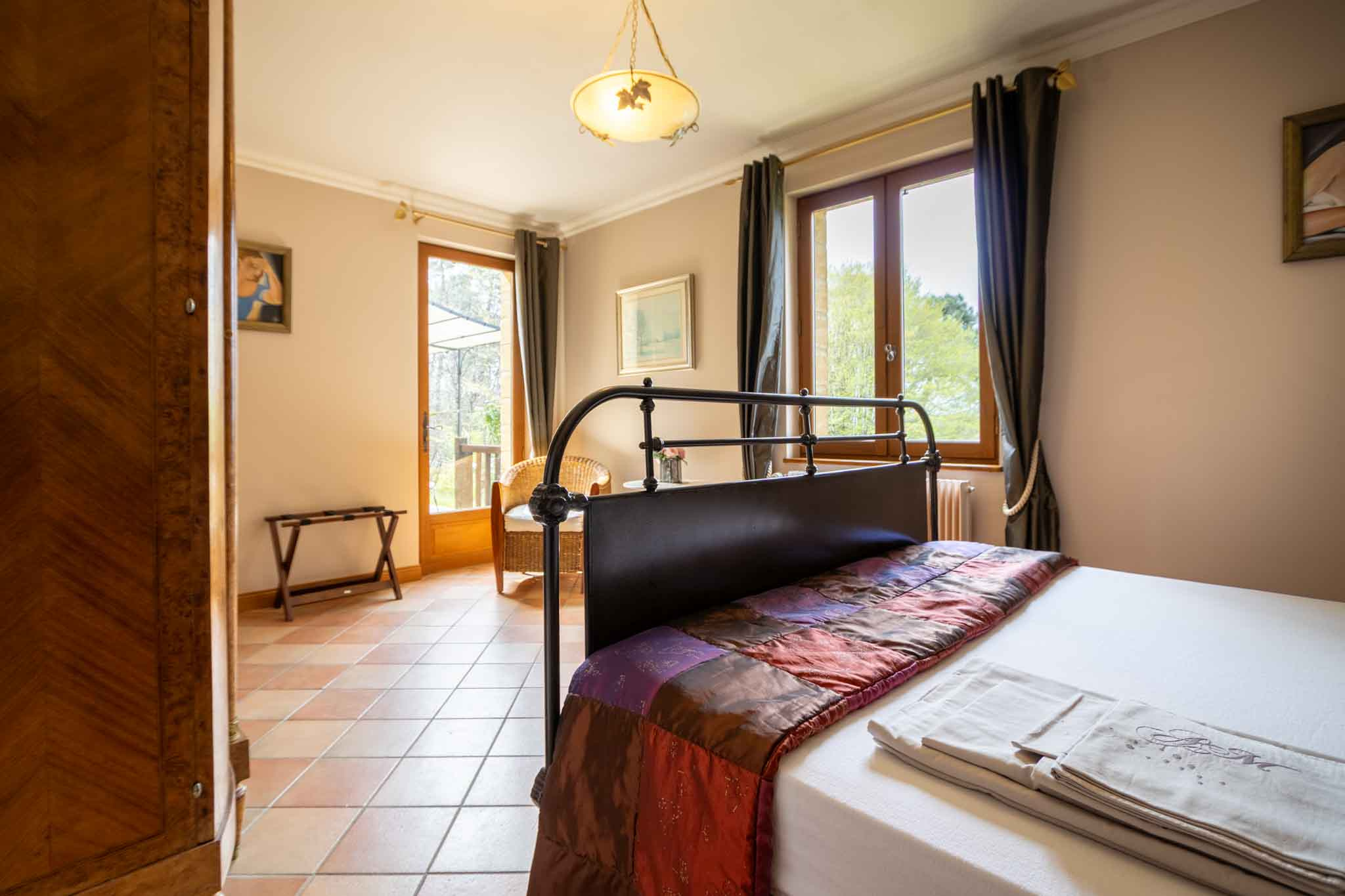 -Chambre ouvrant sur terrasse avec salle de bain, douche et WC.