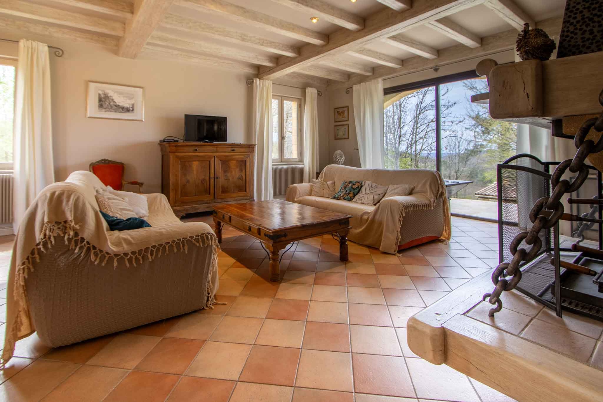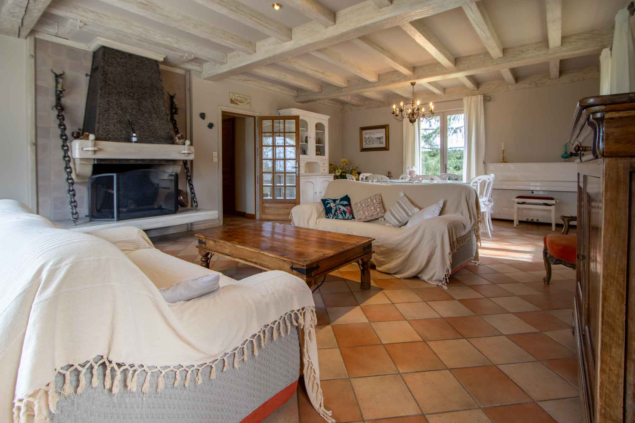 -Séjour salon, avec cheminée ouverte, ouvrant sur l’extérieur,