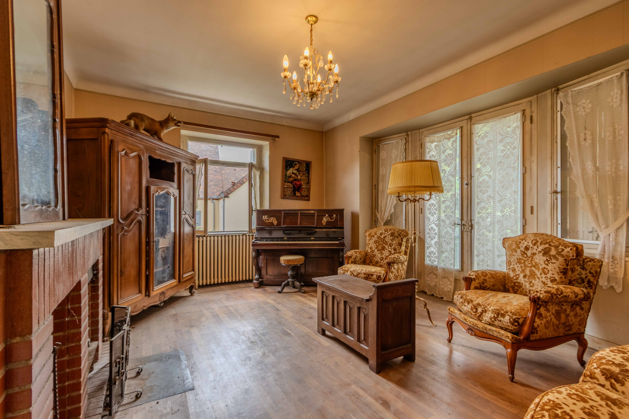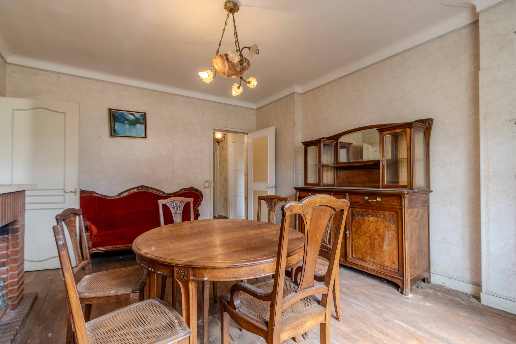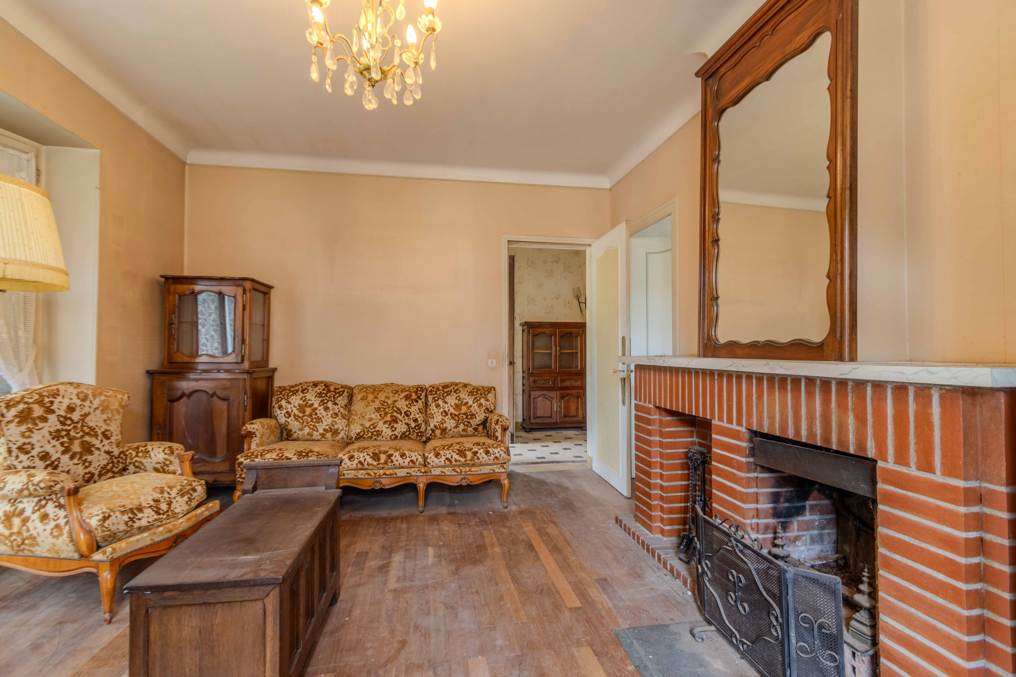 -Séjour avec parquet bois et cheminée,