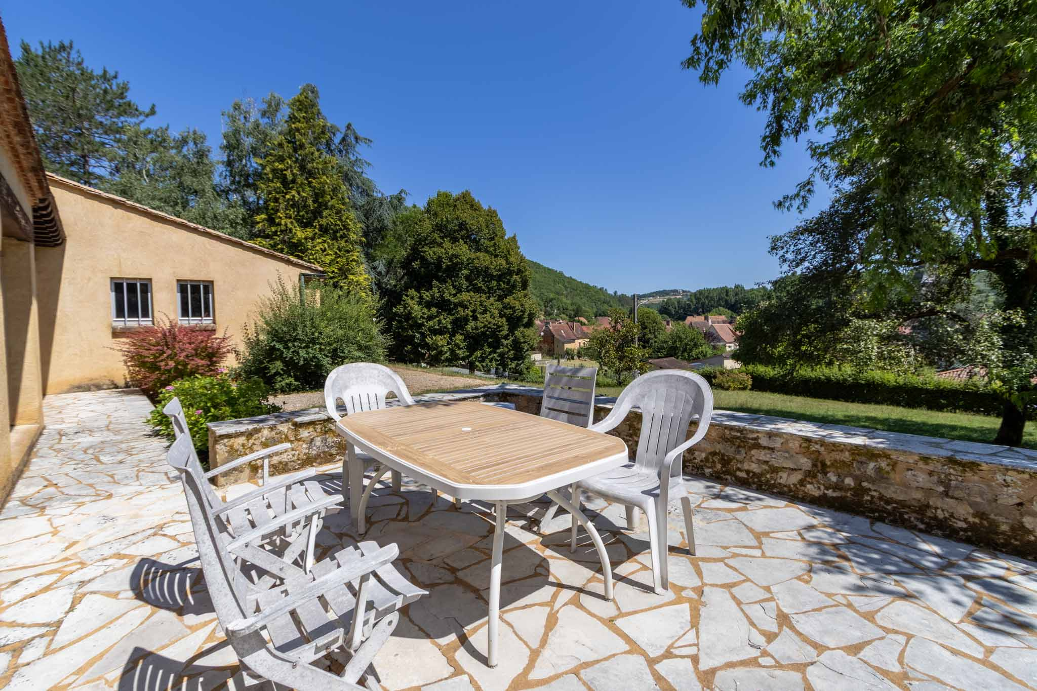 Conçue par un architecte en 1976, cette maison contemporaine domine un petit village, offrant une vue dégagée sur les toits et le clocher. À proximité immédiate des commerces, des écoles, du Céou et de sa piste cyclable, elle s’ouvre sur 2 hectares attenants mêlant jardin et bois, dans un cadre verdoyant.