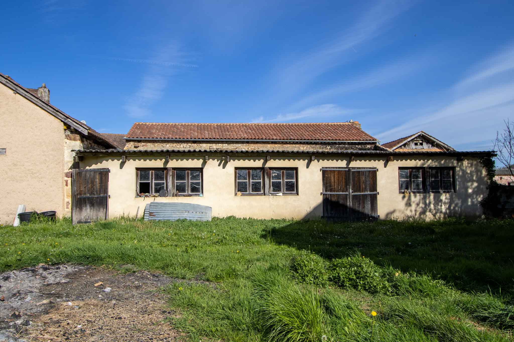 Au centre du village, cette maison rénovée dans les années 1960 est implantée à proximité des commerces et se distingue par ses volumes généreux. Non attenantes à la maison, plusieurs dépendances complètent cette propriété : un ancien atelier de menuiserie avec grenier jouxte un petit bâtiment agricole ; un ancien séchoir à tabac, ainsi qu’une grange en pierre accompagnée d’un préau couvert laissent entrevoir de nombreuses possibilités d’aménagements.