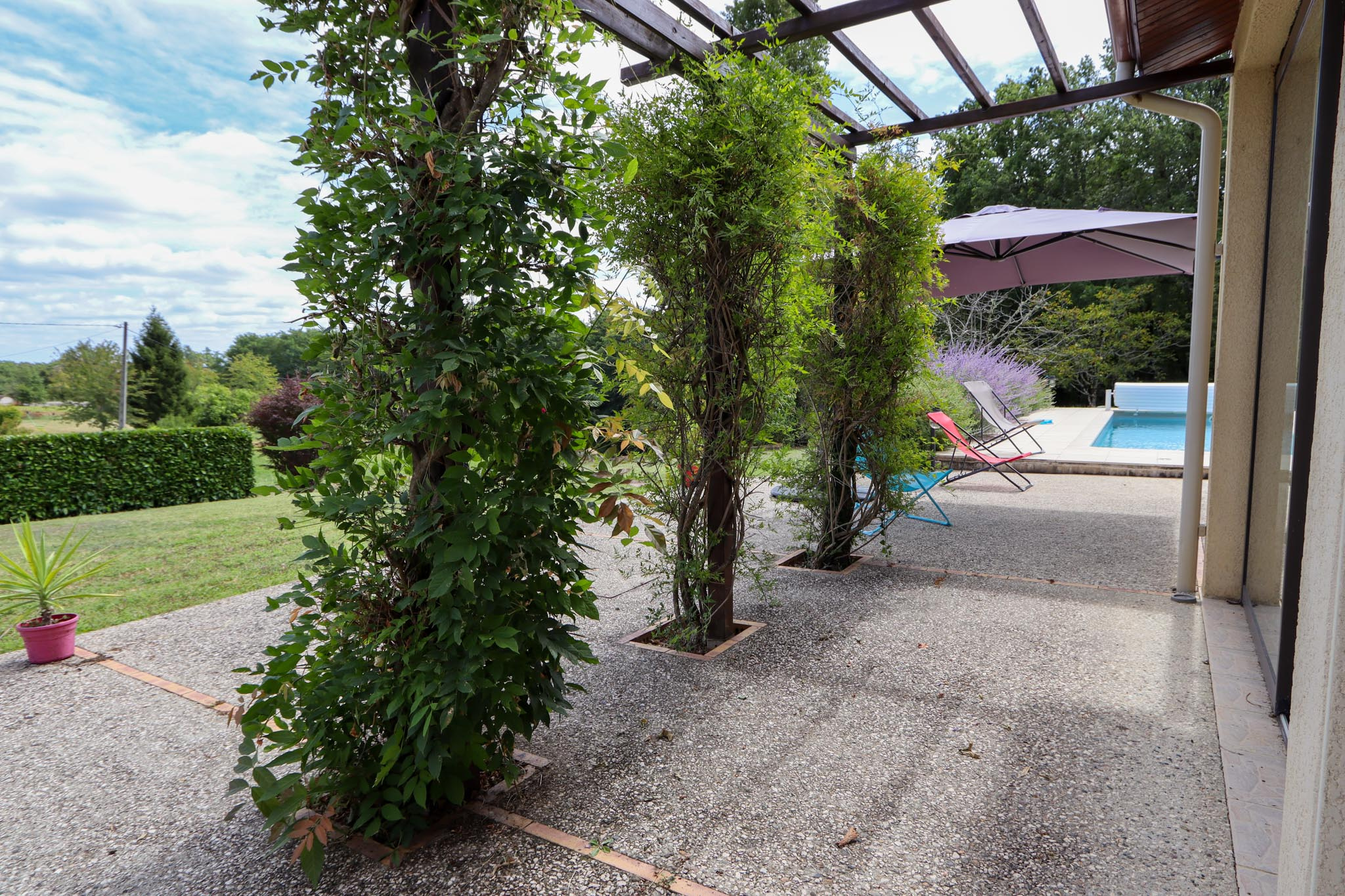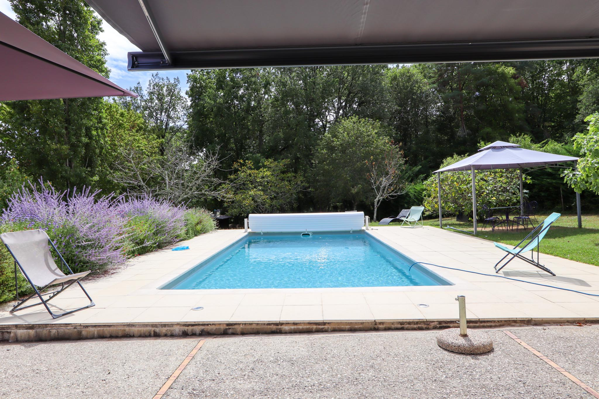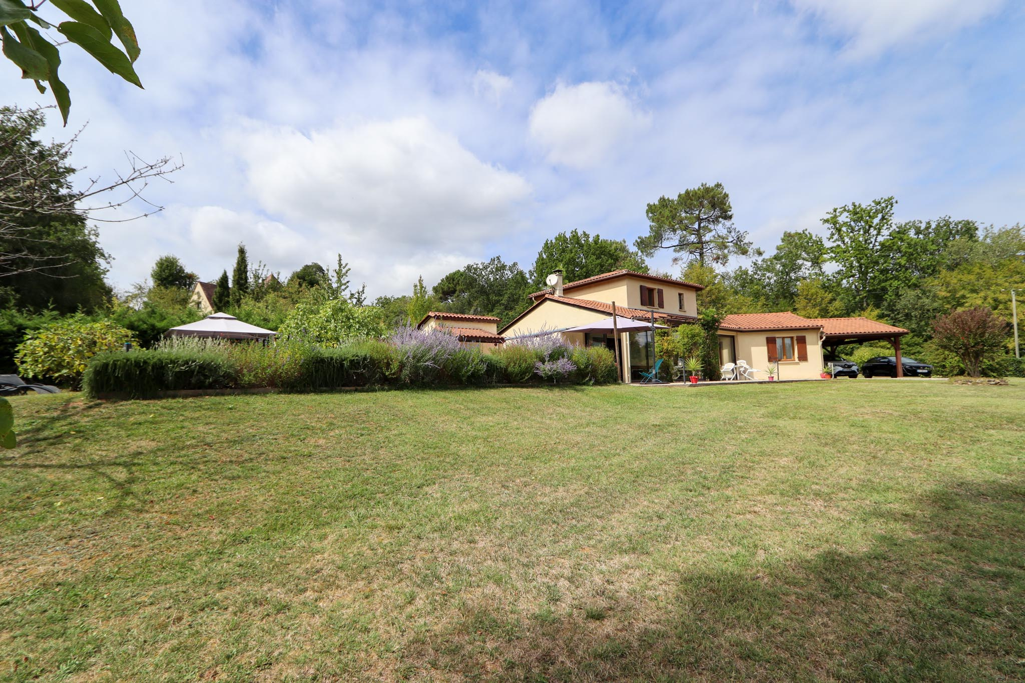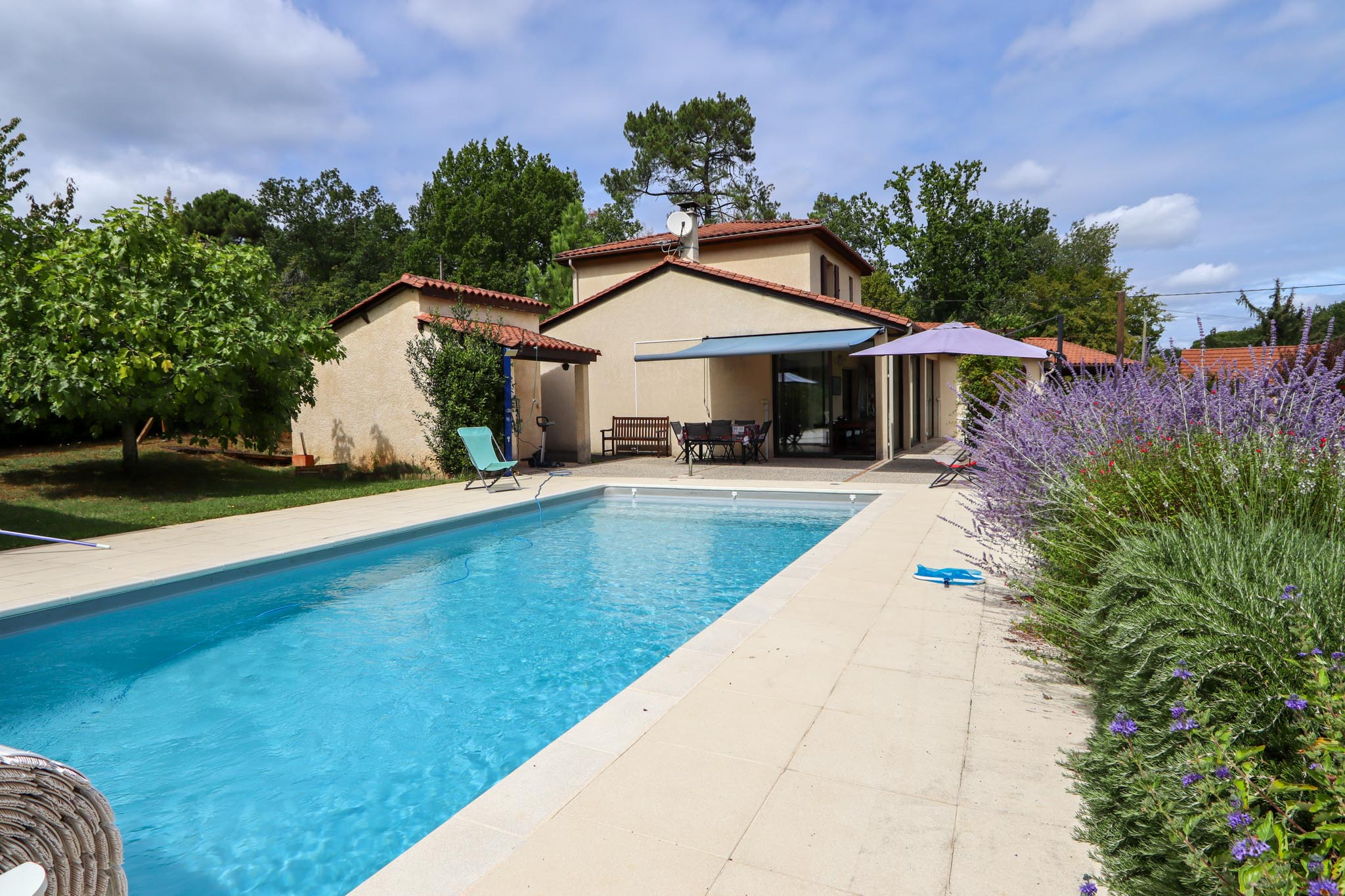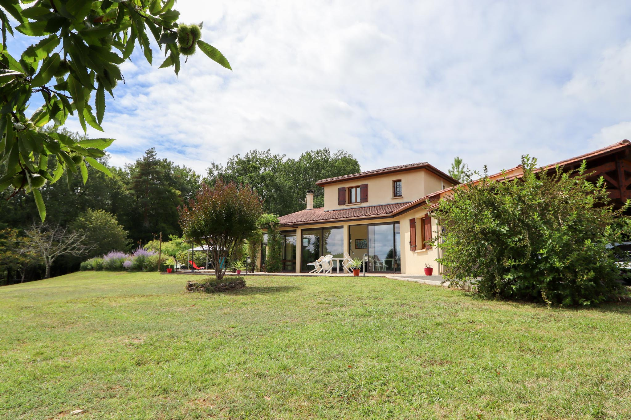 Sur les coteaux de la vallée, proche de la rivière Dordogne, dans un environnement calme et non isolé, maison des années 2000 en parfait état avec sa piscine et son jardin arboré.