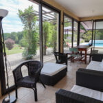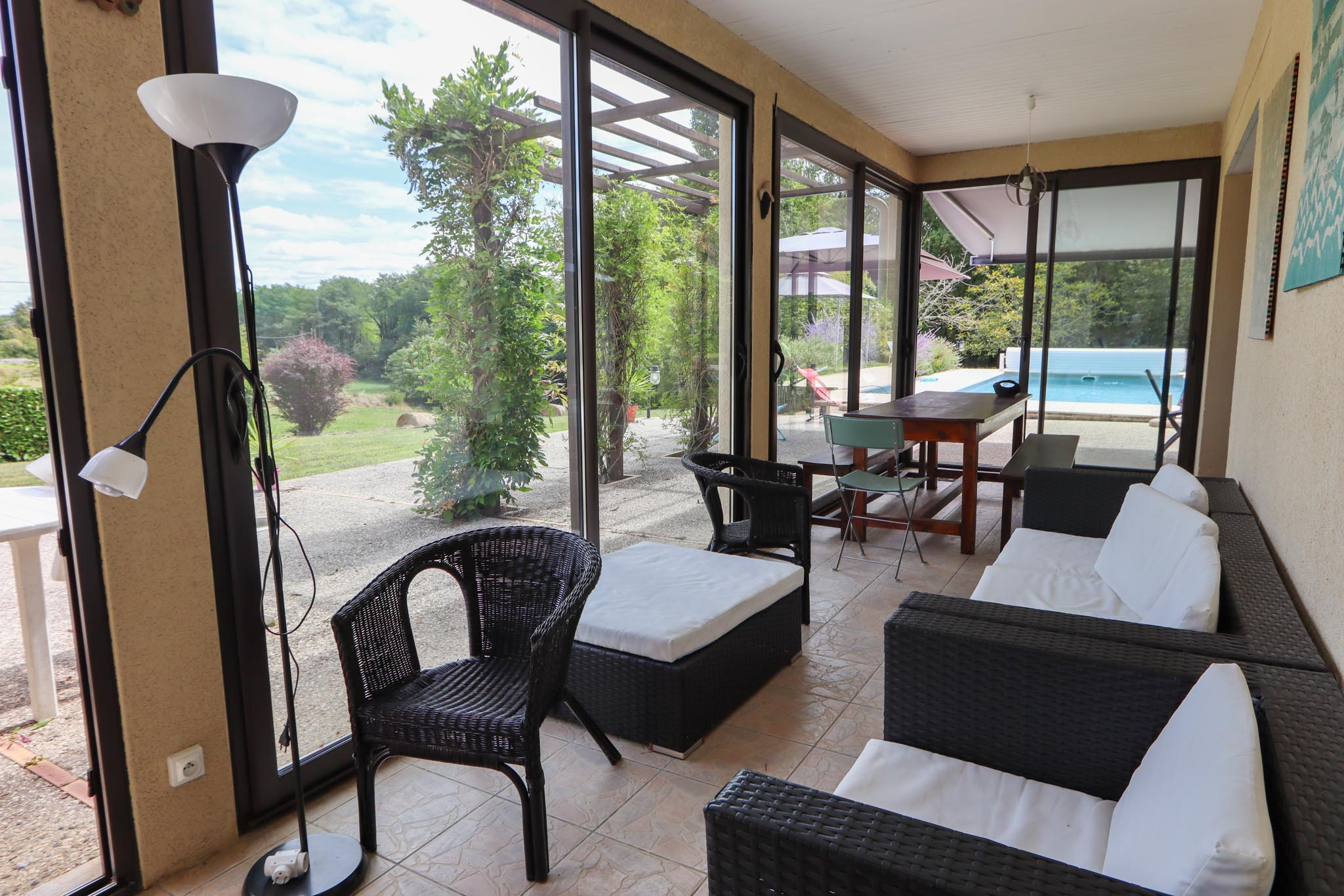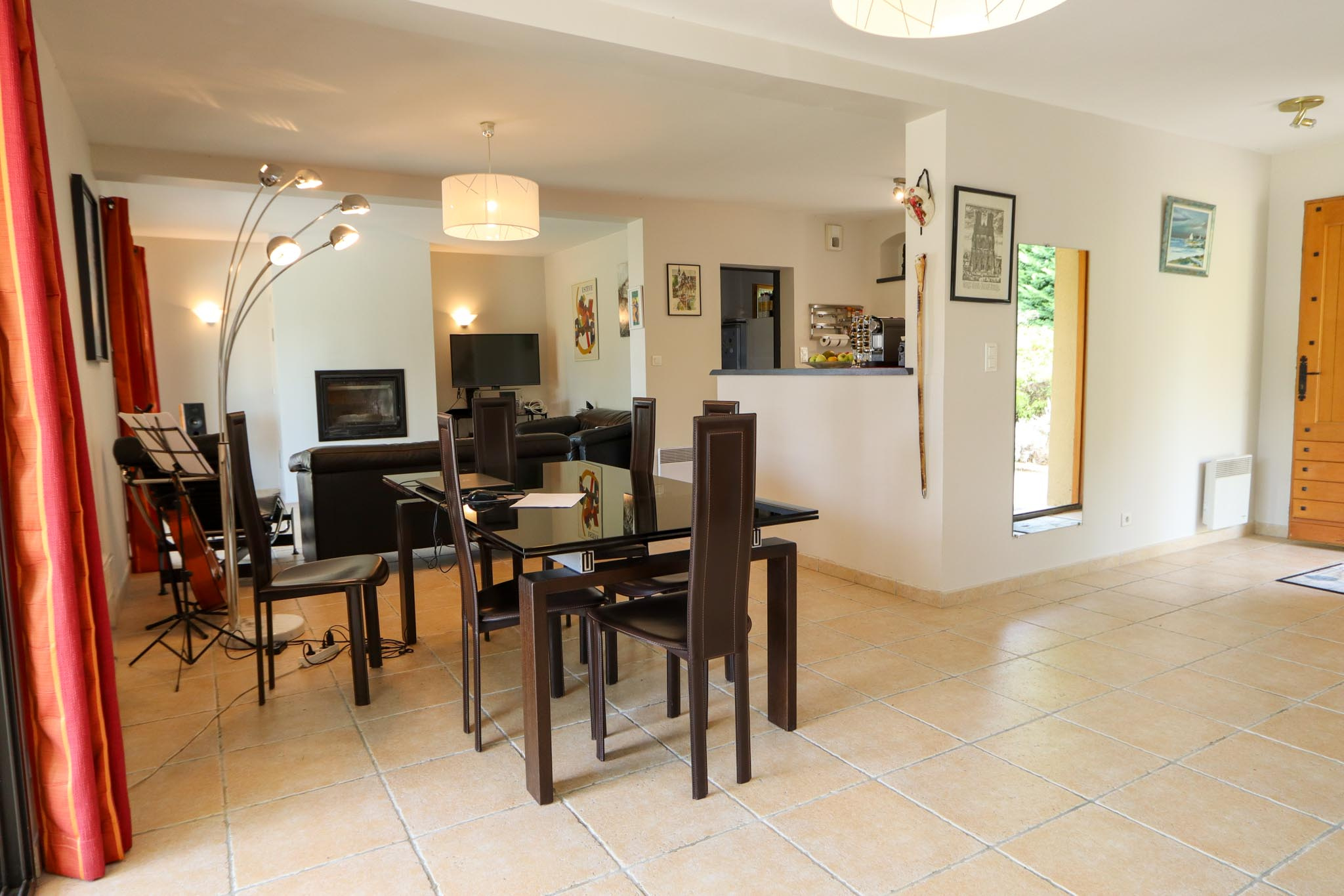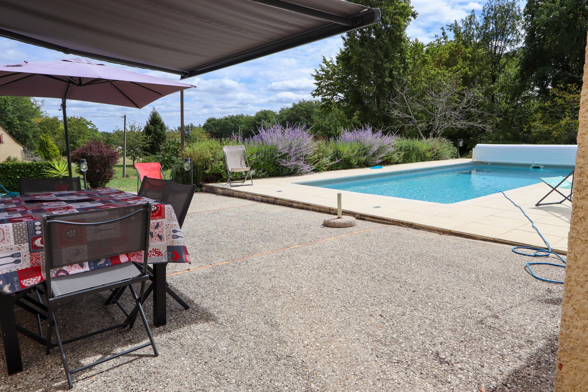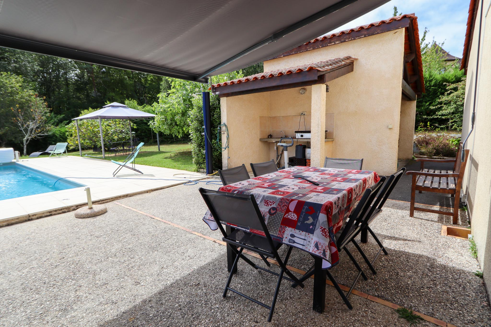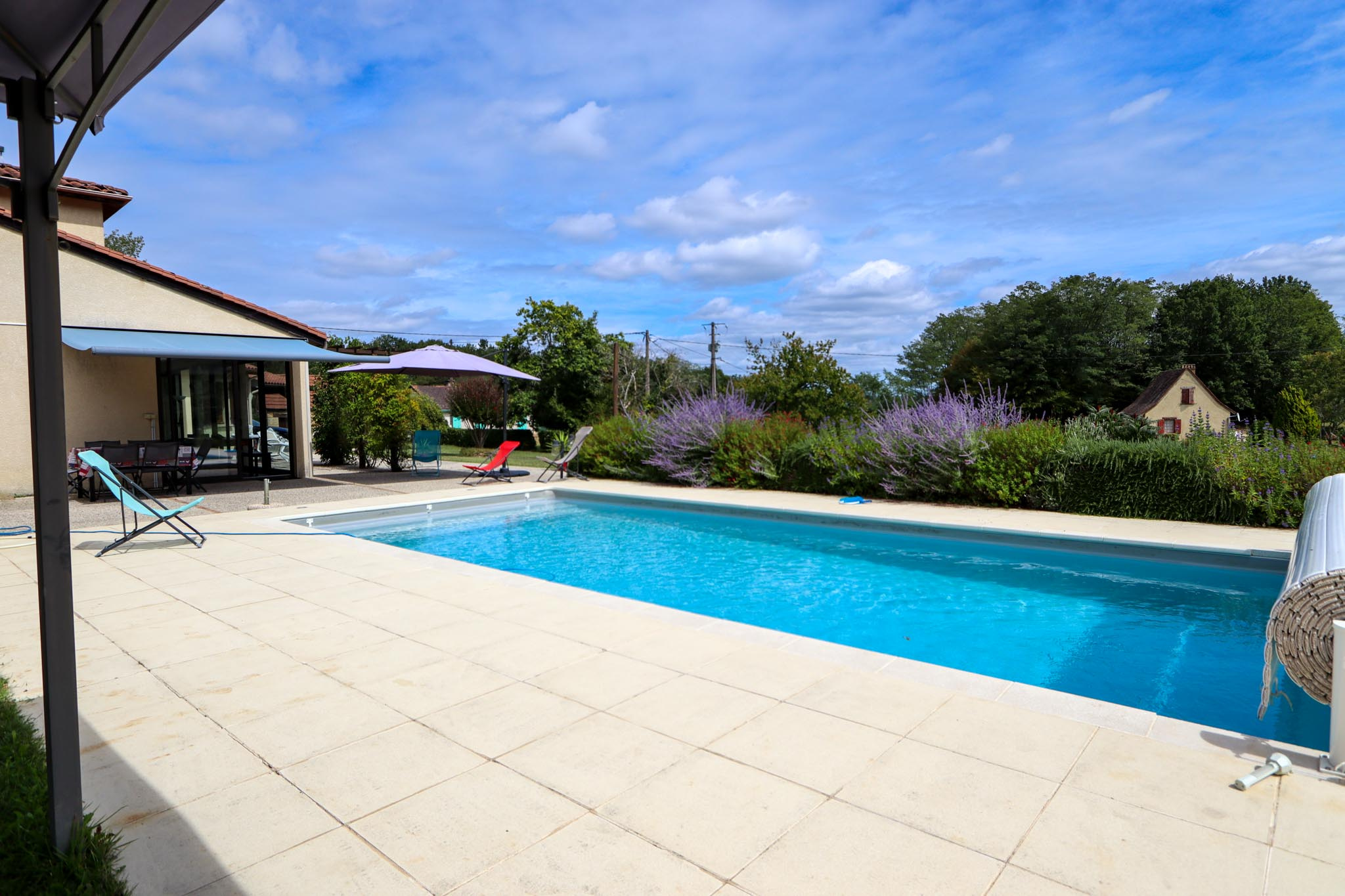 Sur les coteaux de la vallée, proche de la rivière Dordogne, dans un environnement calme et non isolé, maison des années 2000 en parfait état avec sa piscine et son jardin arboré.