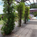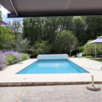 Espace piscine : volet roulant pompe à chaleur douche solaire 9×4 escalier droit.