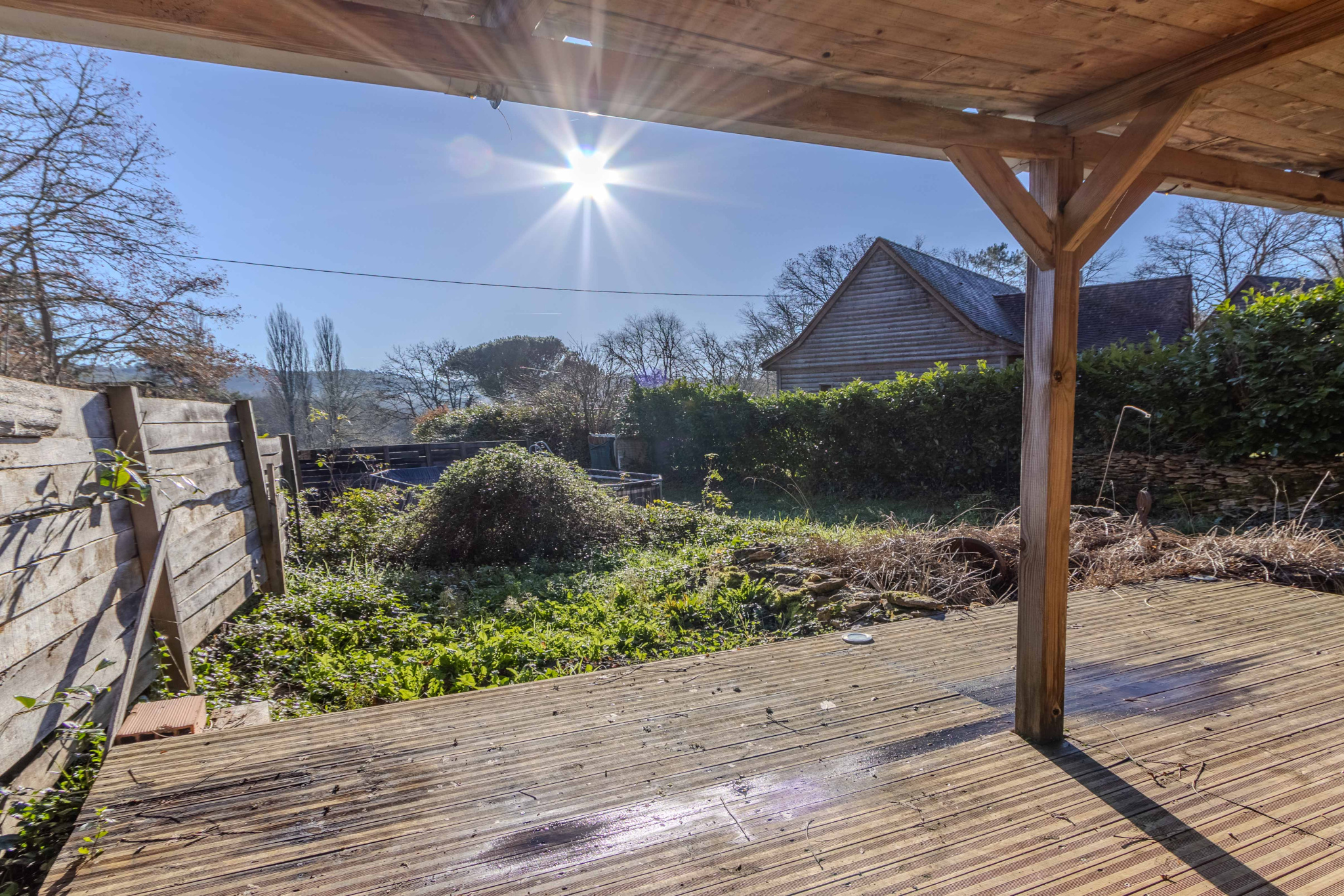 -Mobil home, terrasse en bois et piscine hors-sol.