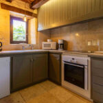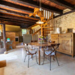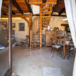 -Pièce de vie avec cuisine ouverte et salle à manger avec cheminée ouverte poêle à bois.