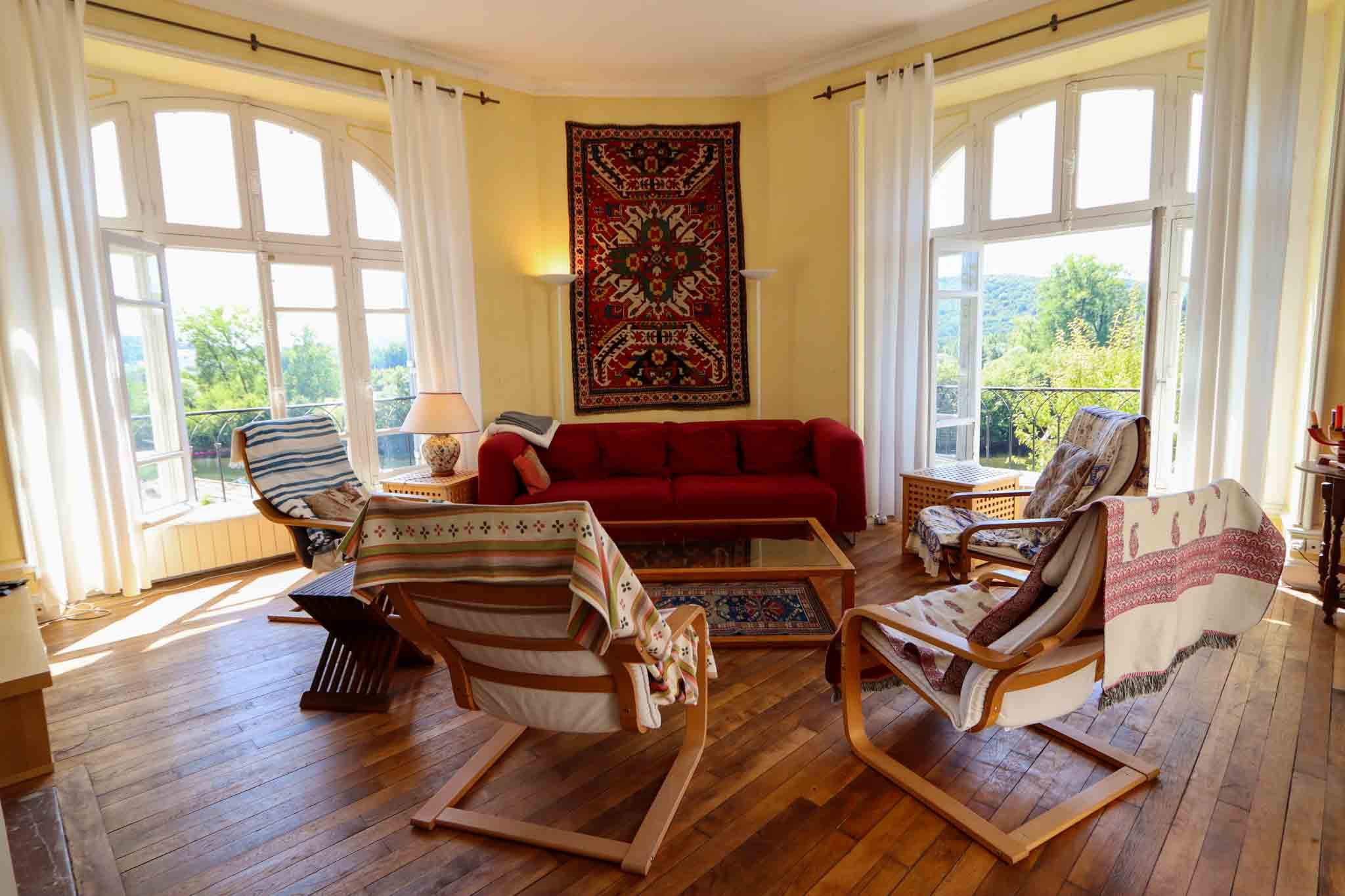 Superbe maison de village dominant la rivière Dordogne, offrant une vue imprenable sur cinq châteaux. Idéalement située à deux pas des commerces, elle dispose de sept chambres et d’un charmant jardin clos.
