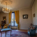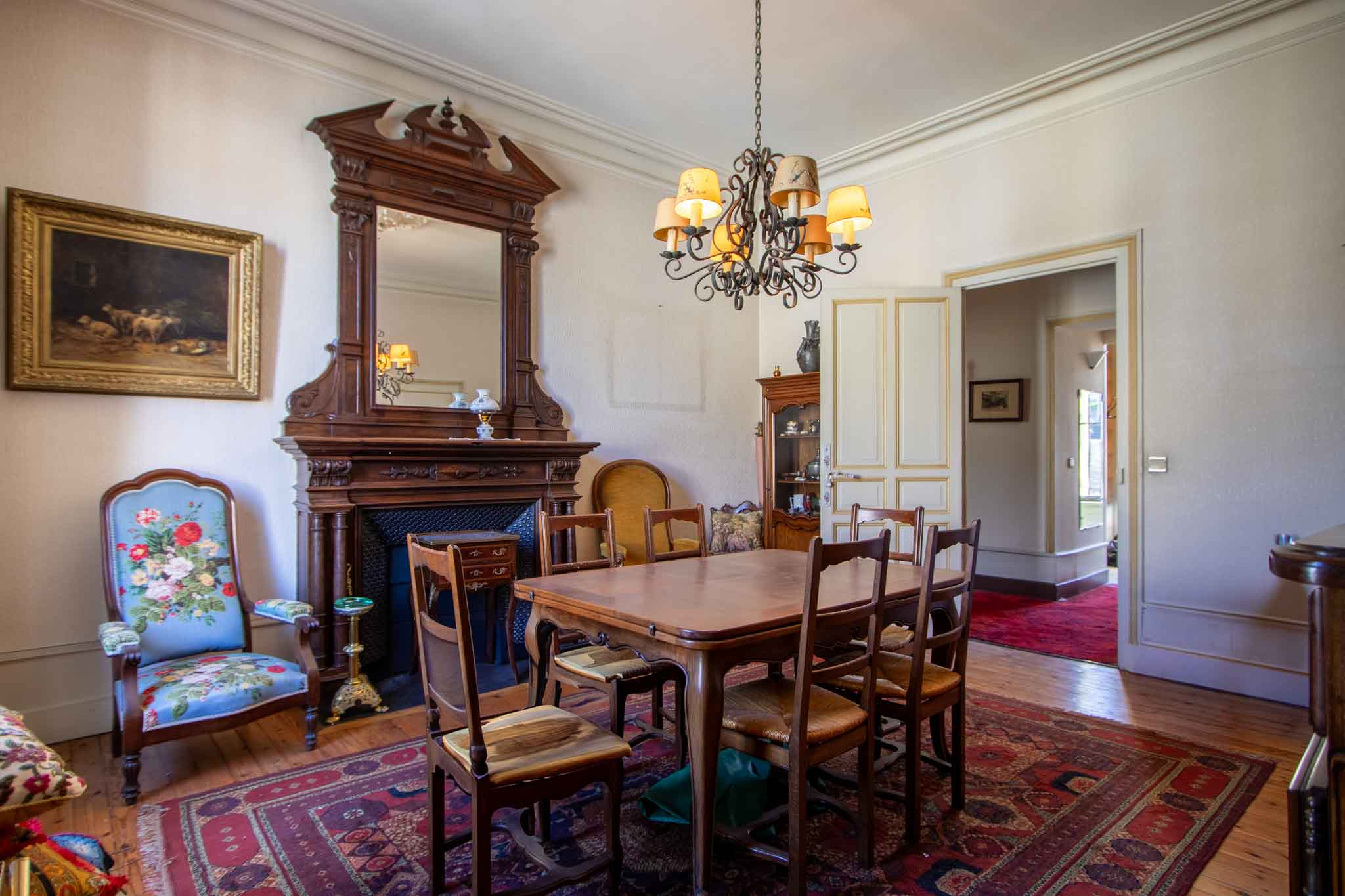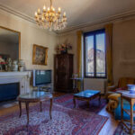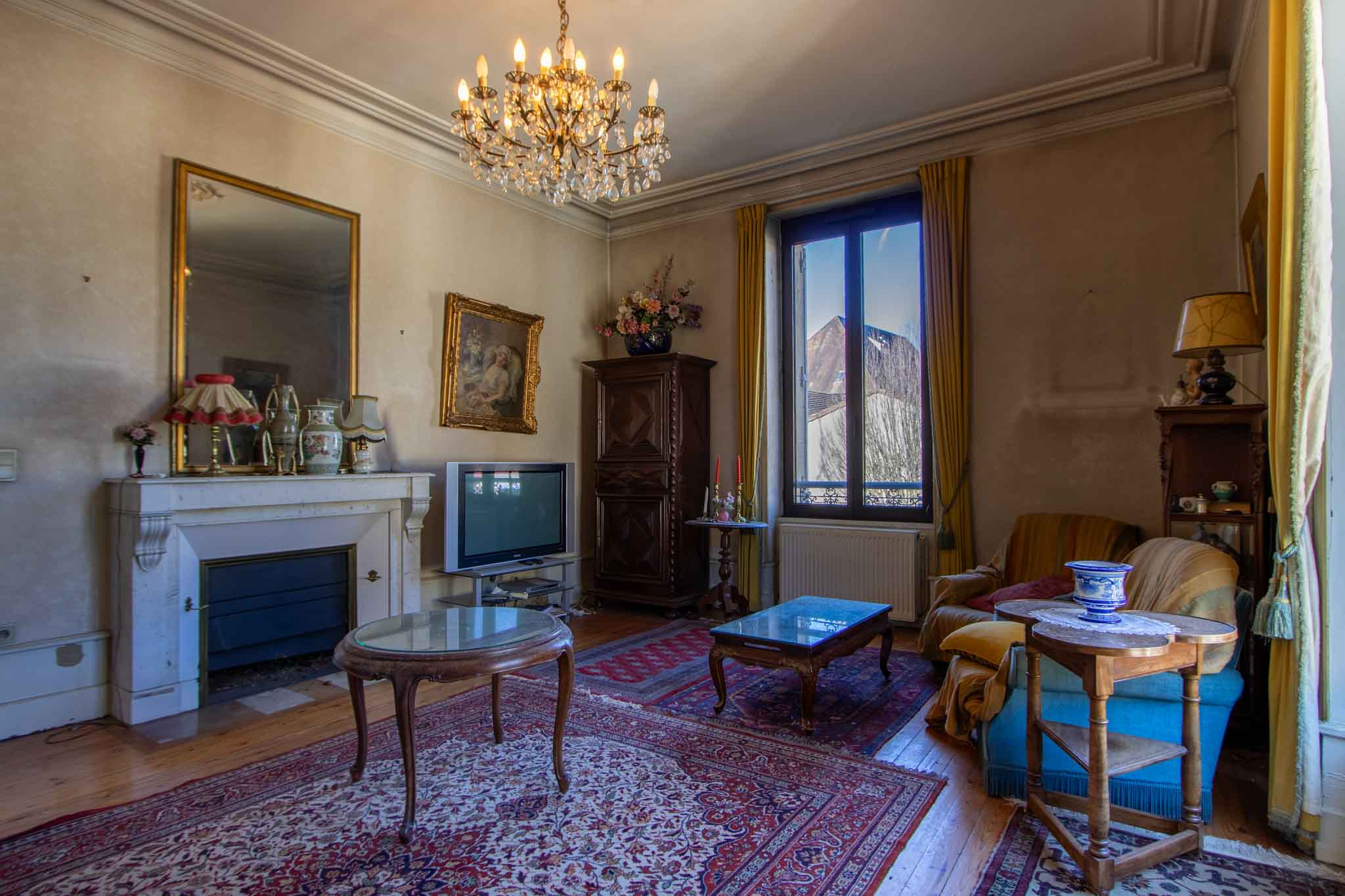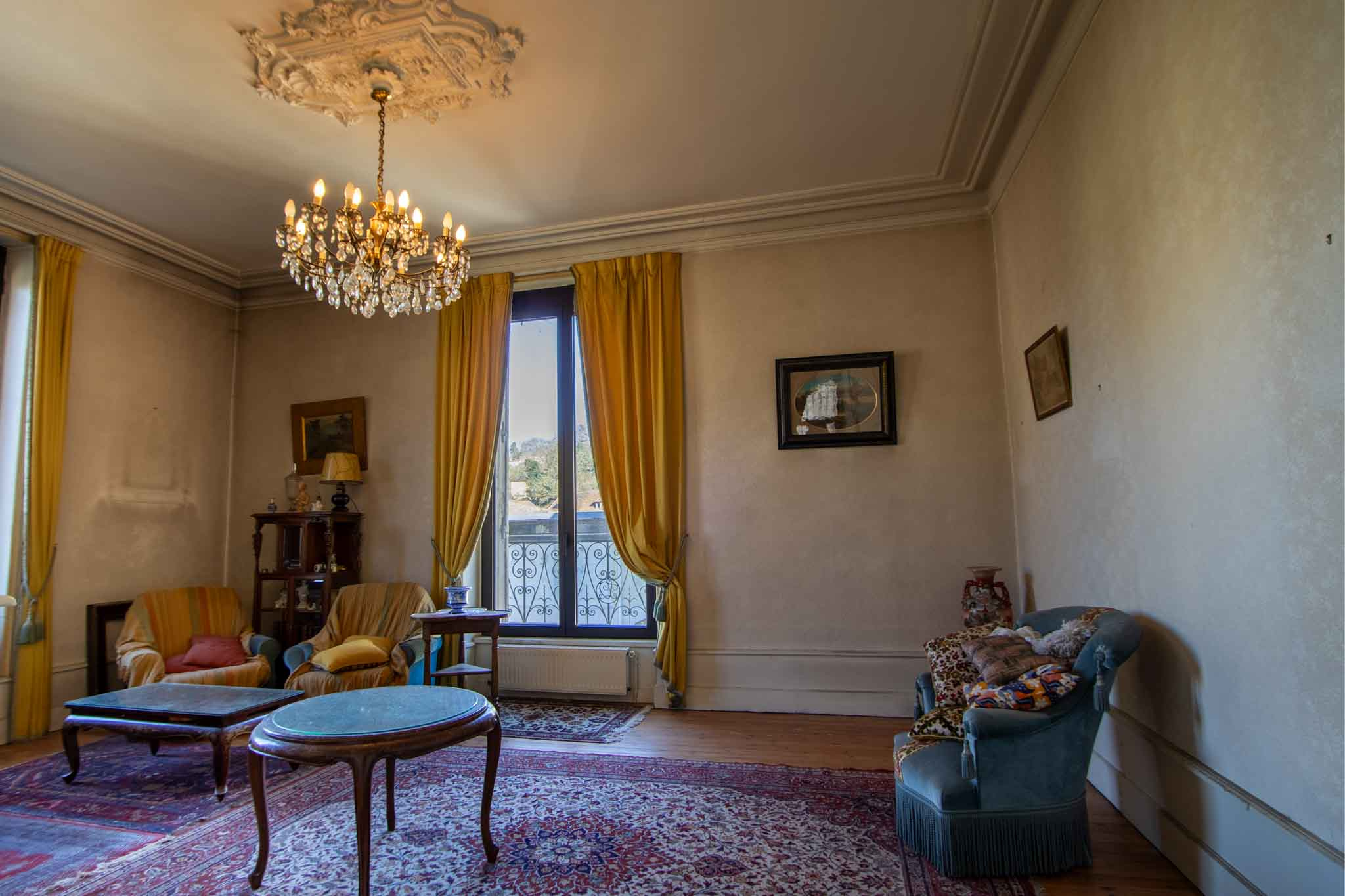-Salon avec parquet bois et ancienne cheminée et balcon,