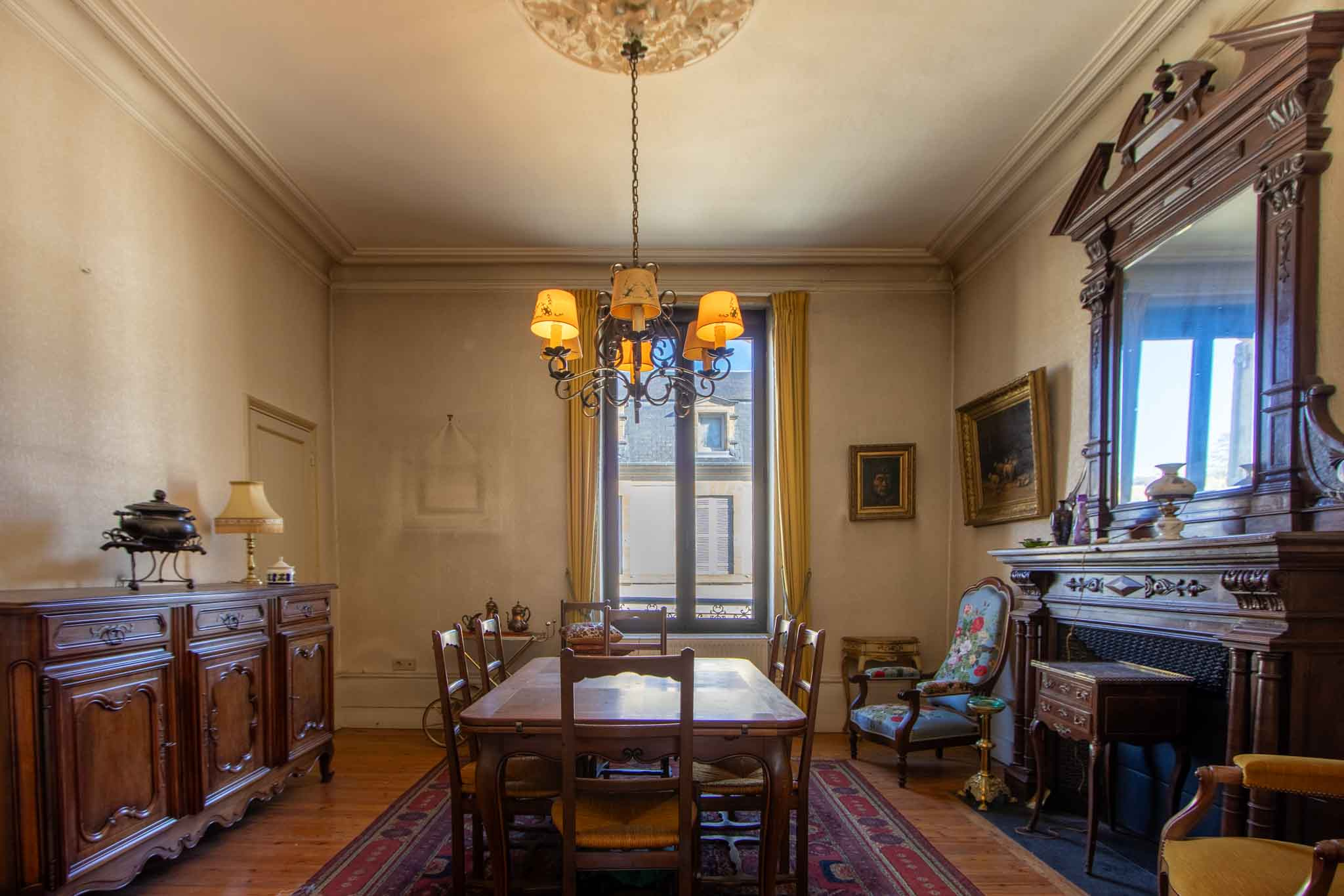 -Séjour avec parquet bois et ancienne cheminée et balcon,