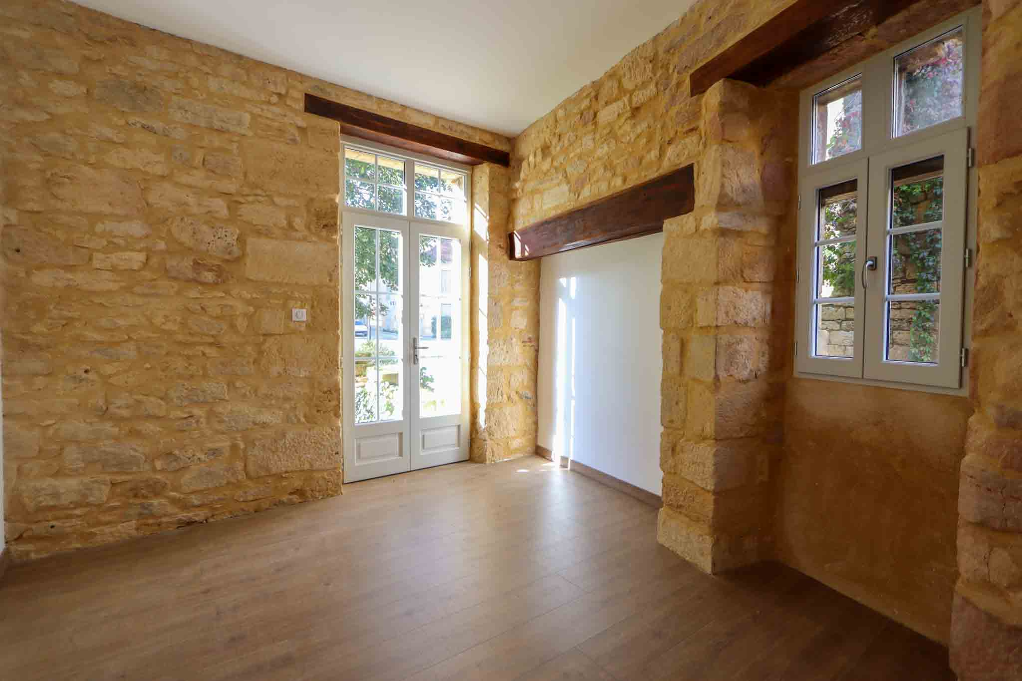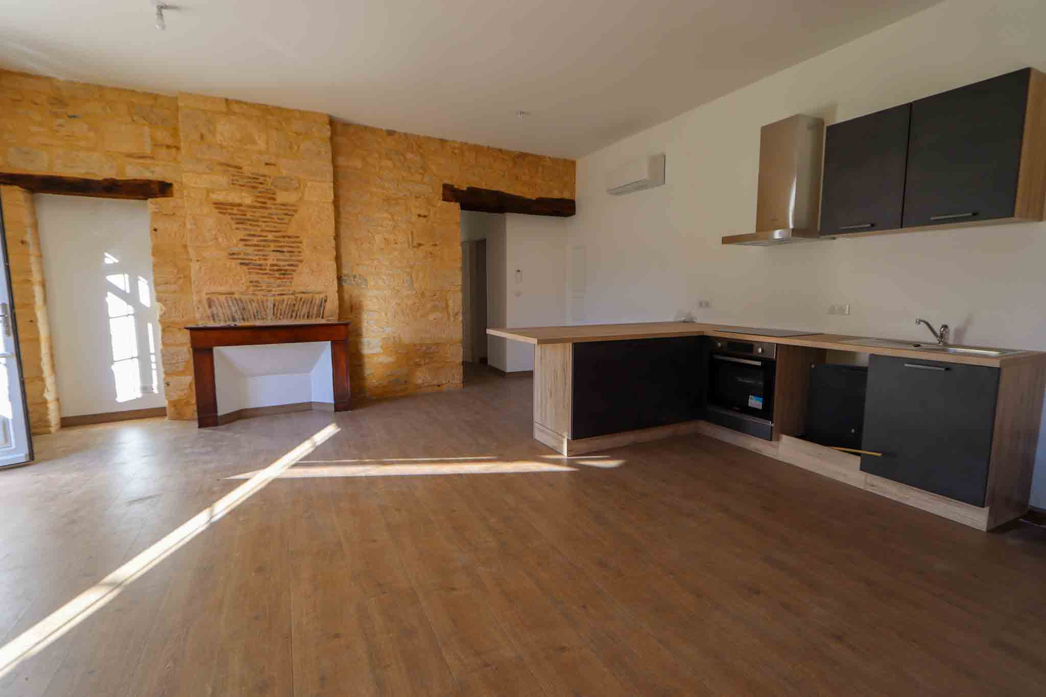 Au rez de chaussée d’un immeuble en pierre du pays, à proximité de tous commerces, appartement T3 refait à neuf en 2023, avec son salon/séjour, ses deux chambres et son jardin clos.