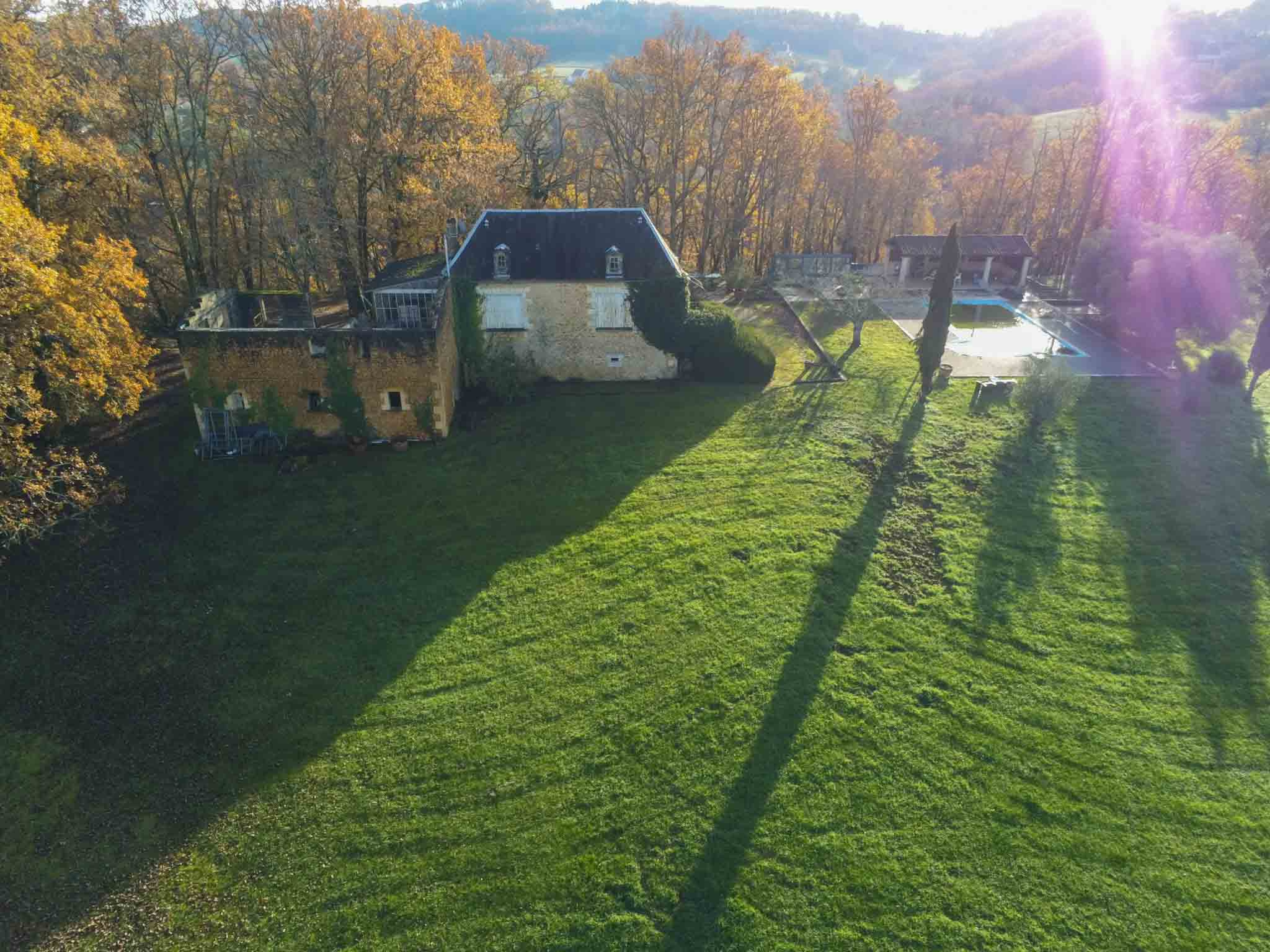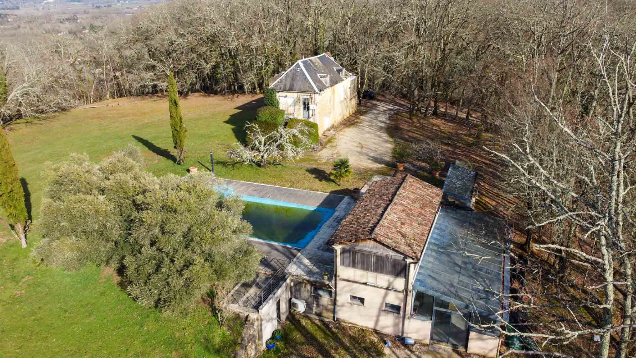 Située au cœur de la magnifique vallée de la Dordogne, face à la Bastide de Domme, cette propriété rare offre une maison en pierre pleine de caractère à restaurer, avec piscine, ainsi qu’un logement indépendant. Le tout est niché au milieu de 8 hectares de terrain, au bout d’une impasse, à quelques minutes d’une charmante ville avec tous commerces, écoles et services. Vous êtes à la fois proche de la vie locale et en pleine nature, dans un calme absolu.
