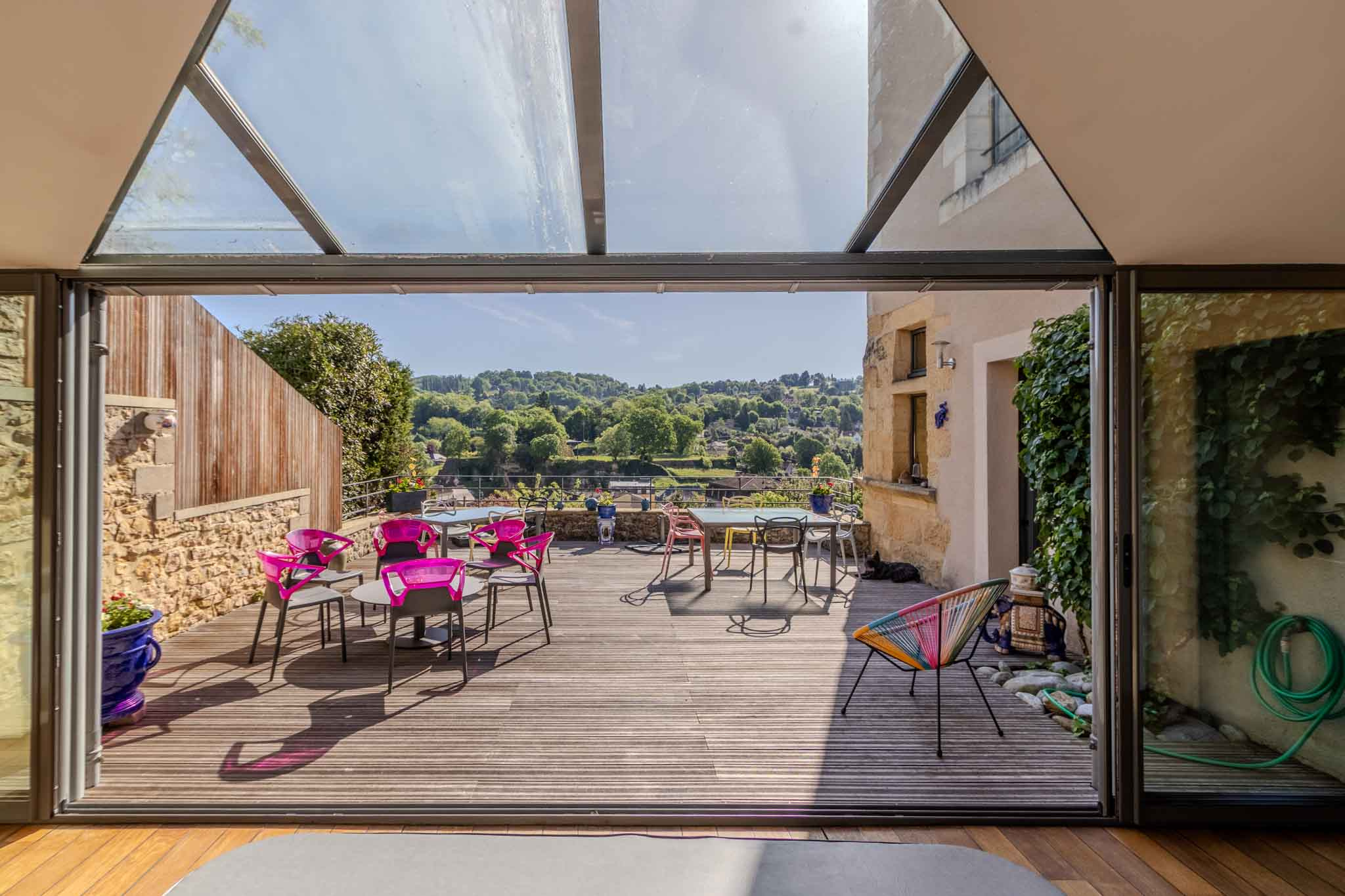 Ensemble de deux maisons situé en position dominante, face au centre historique de Sarlat. Une maison idéale en résidence principale ou en belle maison de famille, l’autre avec potentiel d’exploitation en chambres d’hôtes. Un cadre rare, alliant vue imprenable, charme et multiples possibilités de vie ou d’accueil.
