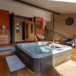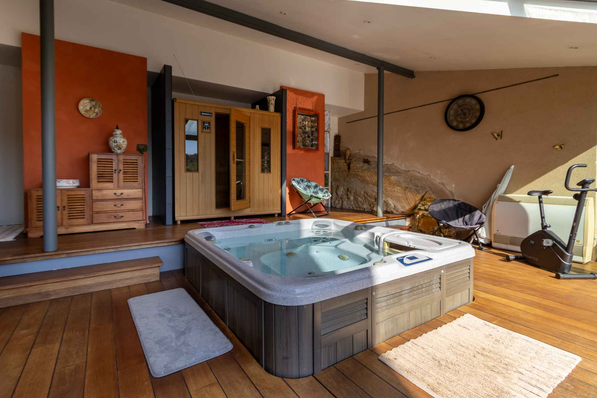 -Terrasse privée, pièce dans un esprit verrière avec jacuzzi et sauna avec douche.