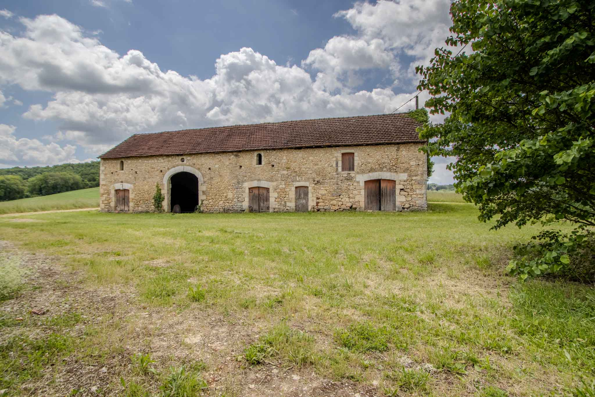 Dominant la vallée, cette ancienne grange en pierre bénéficie d’une exposition plein sud et d’un panorama remarquable sur le château des Milandes, ancienne demeure de Joséphine Baker.